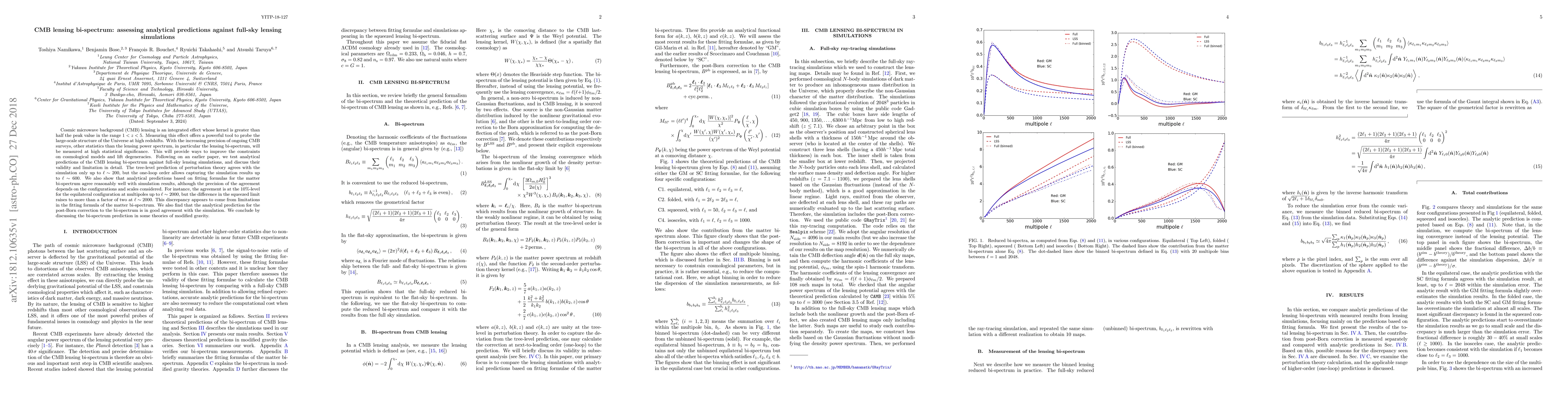 This paper compares analytical predictions of the CMB lensing bi-spectrum to full-sky lensing simulations, finding that while tree-level predictions match simulations up to $\ell\sim 200$, one-loop predictions extend this to $\ell\sim 600$. Analytical fitting formulas for the matter bi-spectrum show reasonable agreement, especially for equilateral configurations, but discrepancies arise in the squeezed limit.