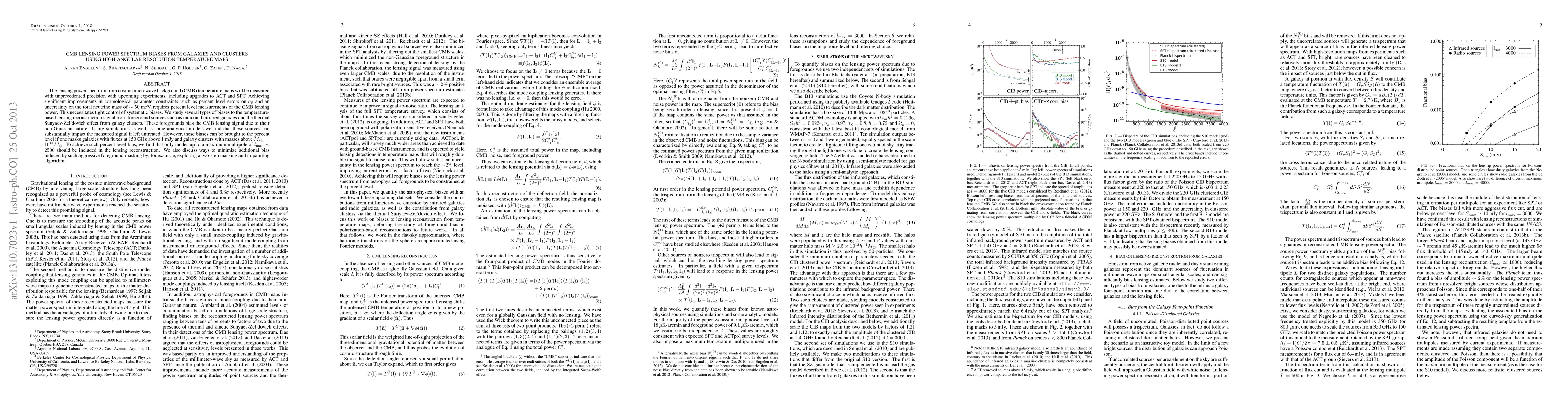 The lensing power spectrum from cosmic microwave background (CMB) temperature maps will be measured with unprecedented precision with upcoming experiments, including upgrades to ACT and SPT. Achieving significant improvements in cosmological parameter constraints, such as percent level errors on sigma_8 and an uncertainty on the total neutrino mass of approximately 50 meV, requires percent level measurements of the CMB lensing power. This necessitates tight control of systematic biases. We study several types of biases to the temperature-based lensing reconstruction signal from foreground sources such as radio and infrared galaxies and the thermal Sunyaev-Zel'dovich effect from galaxy clusters. These foregrounds bias the CMB lensing signal due to their non-Gaussian nature. Using simulations as well as some analytical models we find that these sources can substantially impact the measured signal if left untreated. However, these biases can be brought to the percent level if one masks galaxies with fluxes at 150 GHz above 1 mJy and galaxy clusters with masses above M_vir = 10^14 M_sun. To achieve such percent level bias, we find that only modes up to a maximum multipole of l_max ~ 2500 should be included in the lensing reconstruction. We also discuss ways to minimize additional bias induced by such aggressive foreground masking by, for example, exploring a two-step masking and in-painting algorithm.