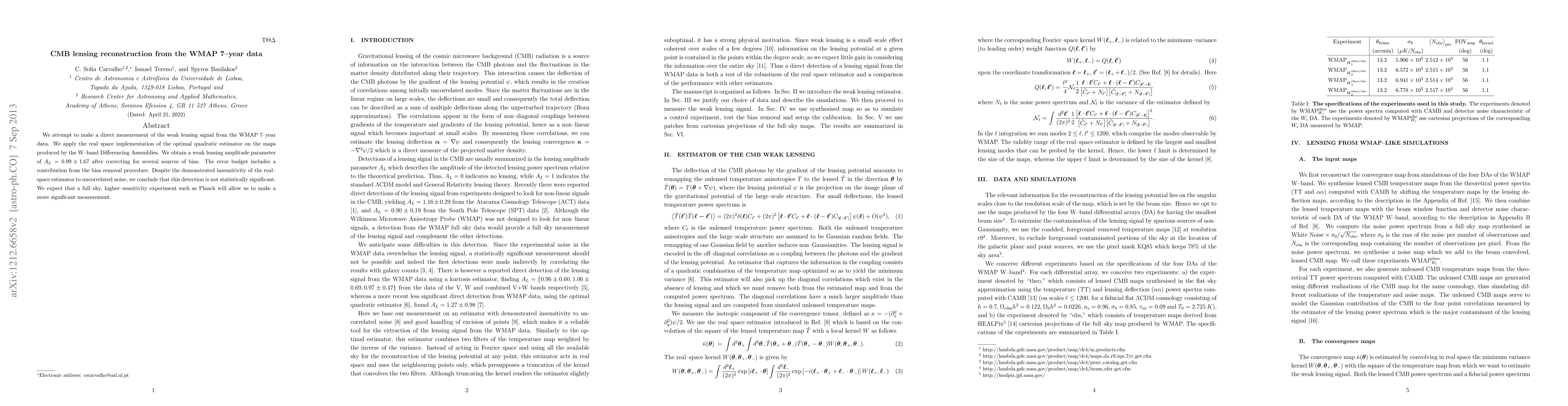 This paper reconstructs the cosmic microwave background (CMB) lensing signal from WMAP 7-year data using an optimal quadratic estimator, yielding a weak lensing amplitude parameter of $A_{L}=0.99\pm1.67$. Despite the method's insensitivity to noise, the detection is not statistically significant, suggesting future higher-sensitivity experiments like Planck may provide more conclusive results.
