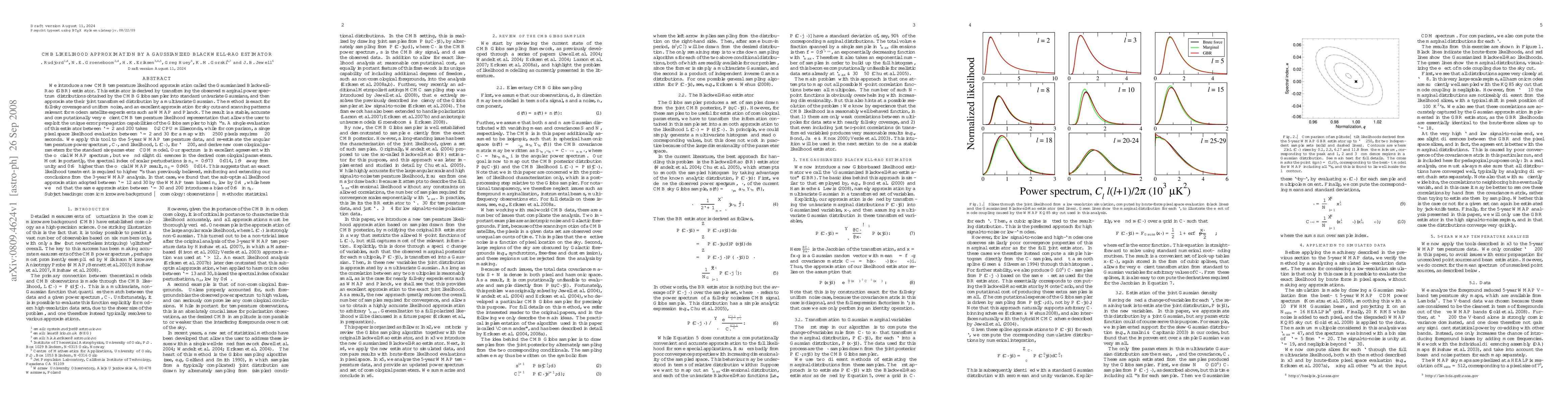 This paper introduces the Gaussianized Blackwell-Rao (GBR) estimator for CMB temperature likelihood approximation, which transforms observed marginal power spectra into Gaussians and approximates their joint distribution as a multivariate Gaussian. The GBR estimator is efficient and accurate, especially for modern satellite experiments, and it reveals slight differences in cosmological parameters derived from 5-year WMAP data compared to official results, indicating a need for exact likelihood treatment at higher multipoles.