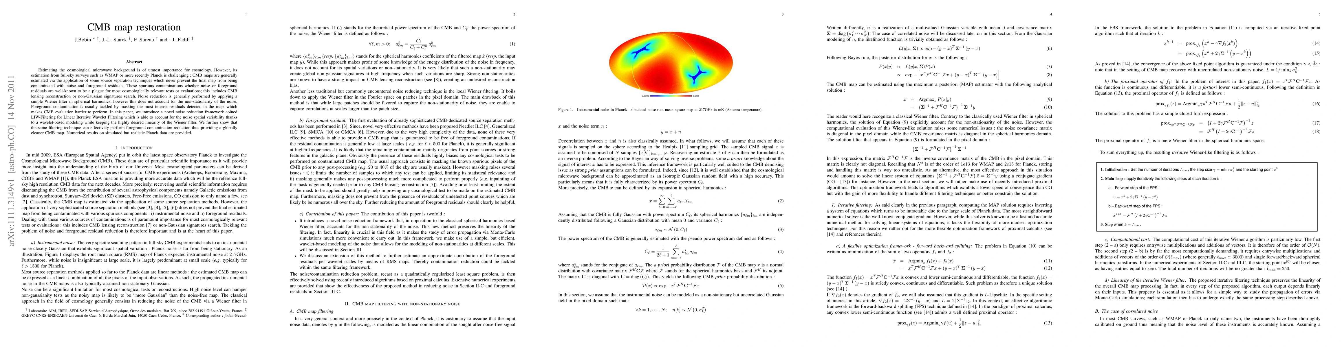 This paper introduces a novel LIW-Filtering technique for noise reduction in CMB maps, addressing the non-stationarity of noise through wavelet-based modeling while maintaining linearity. The method also effectively reduces foreground contamination, resulting in cleaner CMB maps for cosmological analysis.
