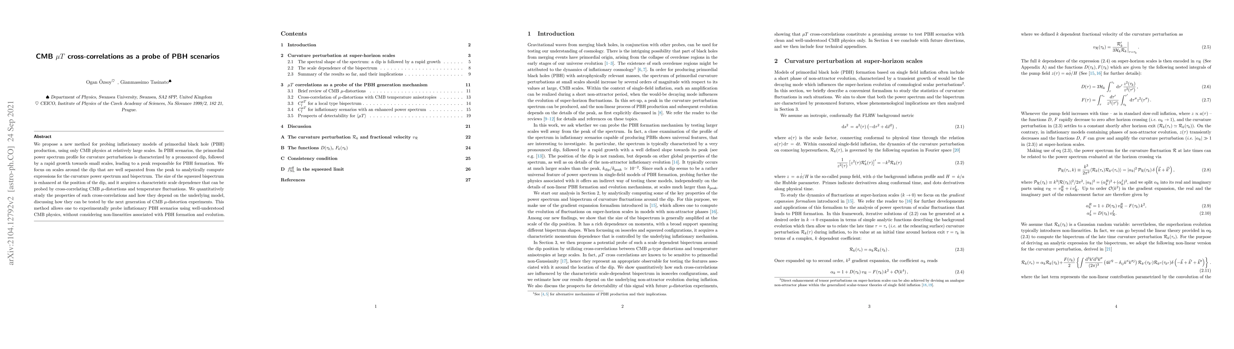 We propose a new method for probing inflationary models of primordial black hole (PBH) production, using only CMB physics at relatively large scales. In PBH scenarios, the primordial power spectrum profile for curvature perturbations is characterized by a pronounced dip, followed by a rapid growth towards small scales, leading to a peak responsible for PBH formation. We focus on scales around the dip that are well separated from the peak to analytically compute expressions for the curvature power spectrum and bispectrum. The size of the squeezed bispectrum is enhanced at the position of the dip, and it acquires a characteristic scale dependence that can be probed by cross-correlating CMB $\mu$-distortions and temperature fluctuations. We quantitatively study the properties of such cross-correlations and how they depend on the underlying model, discussing how they can be tested by the next generation of CMB $\mu$-distortion experiments. This method allows one to experimentally probe inflationary PBH scenarios using well-understood CMB physics, without considering non-linearities associated with PBH formation and evolution.