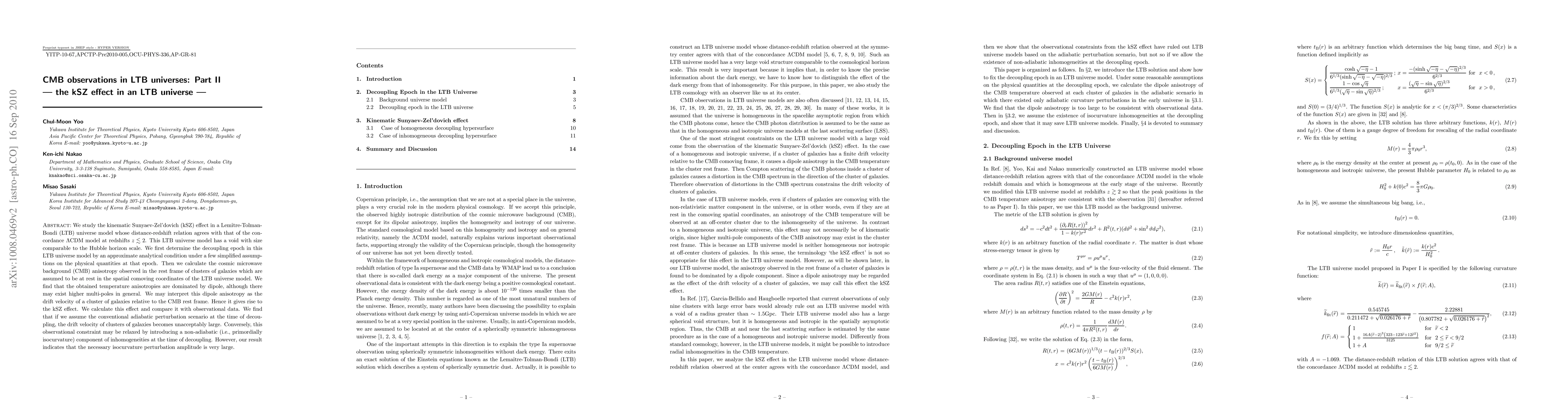 This paper investigates the kinematic Sunyaev-Zel'dovich (kSZ) effect in a Lem\^itre-Tolman-Bondi (LTB) universe model, finding that the observed CMB anisotropy is dominated by a dipole, interpreted as the drift velocity of galaxy clusters relative to the CMB rest frame. The study suggests that a non-adiabatic primordial isocurvature component could mitigate the large drift velocities, though this requires a very large perturbation amplitude.