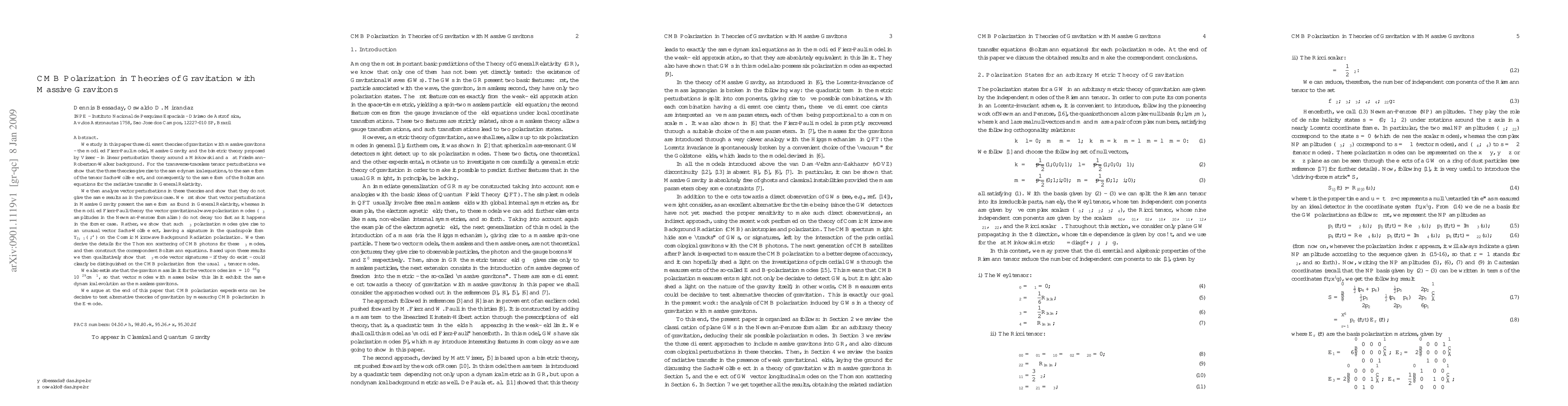 We study in this paper three different theories of gravitation with massive gravitons - the modified Fierz-Pauli (FP) model, Massive Gravity and the bimetric theory proposed by Visser - in linear perturbation theory around a Minkowski and a flat FRW background. For the TT tensor perturbations we show that the three theories give rise to the same dynamical equations and to the same form of the Boltzmann equations for the radiative transfer in General Relativity (GR). We then analyze vector perturbations in these theories and show that they do not give the same results as in the previous case. We first show that vector perturbations in Massive Gravity present the same form as found in General Relativity, whereas in the modified FP theory the vector gravitational-wave (GW) polarization modes ($\Psi_{3}$ amplitudes in the Newman-Penrose (NP) formalism) do not decay too fast as it happens in the former case. Rather, we show that such $\Psi_{3}$ polarization modes give rise to an unusual vector Sachs-Wolfe effect, leaving a signature in the quadrupole form $Y_{2,\pm 1}(\theta,\varphi)$ on the CMB polarization. We then derive the details for the Thomson scattering of CMB photons for these $\Psi_{3}$ modes, and then construct the correspondent Boltzmann equations. Based upon these results we then qualitatively show that $\Psi_{3}$-mode vector signatures - if they do exist - could clearly be distinguished on the CMB polarization from the usual $\Psi_4$ tensor modes.
