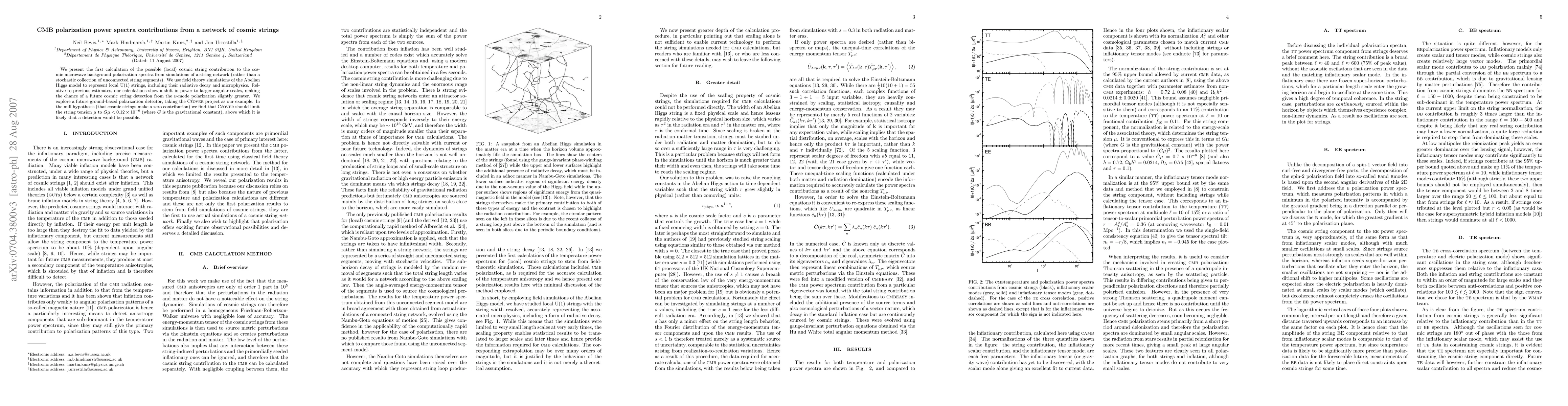 This paper calculates the cosmic microwave background polarization spectra contributions from a network of cosmic strings, showing a shift in power to larger angular scales. It predicts a higher likelihood of future detections, especially with ground-based detectors like CLOVER, which could limit string tension to Gμ < 0.12e-6.