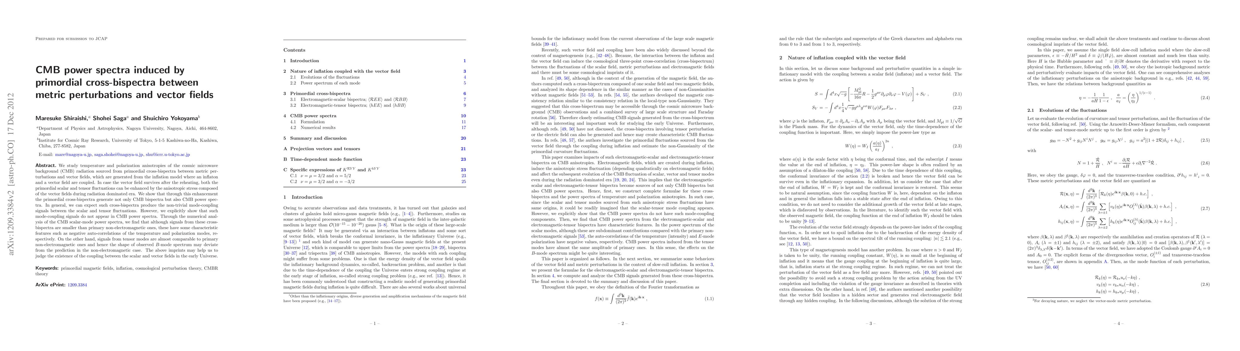 This paper investigates how primordial cross-bispectra between metric perturbations and vector fields generated during inflation can induce unique signatures in the CMB power spectra. It finds that while these cross-bispectra produce non-trivial mode-coupling signals, they do not appear in the CMB power spectra, but instead introduce characteristic features such as negative auto-correlations in temperature and polarization modes.