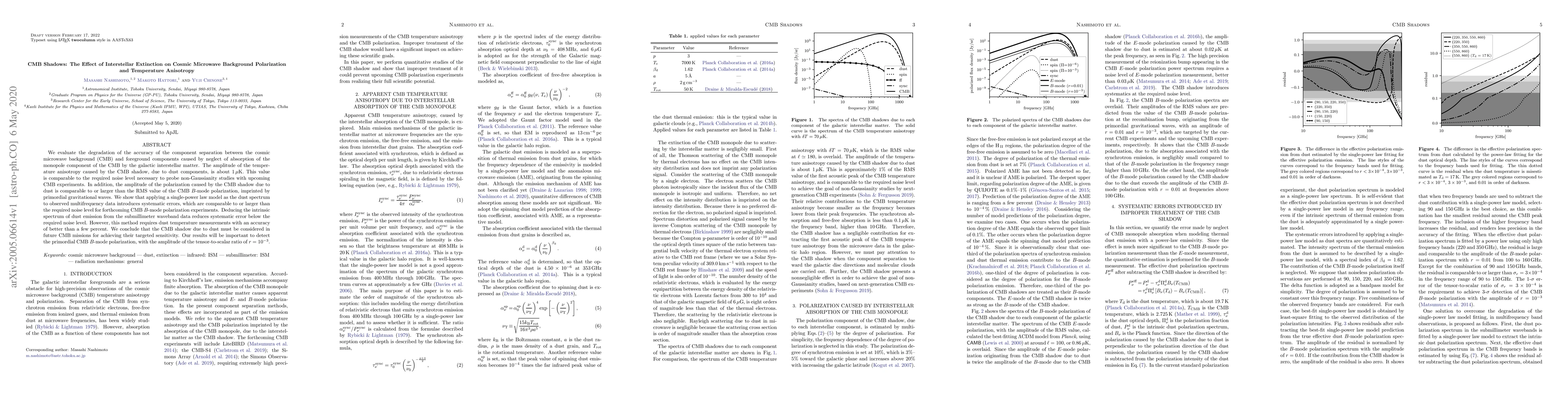 We evaluate the degradation of the accuracy of the component separation between the cosmic microwave background (CMB) and foreground components caused by neglect of absorption of the monopole component of the CMB by the galactic interstellar matter. The amplitude of the temperature anisotropy caused by the CMB shadow, due to dust components, is about 1 uK. This value is comparable to the required noise level necessary to probe non-Gaussianity studies with upcoming CMB experiments. In addition, the amplitude of the polarization caused by the CMB shadow due to dust is comparable to or larger than the RMS value of the CMB B-mode polarization, imprinted by primordial gravitational waves. We show that applying a single-power law model as the dust spectrum to observed multifrequency data introduces systematic errors, which are comparable to or larger than the required noise level for forthcoming CMB B-mode polarization experiments. Deducing the intrinsic spectrum of dust emission from the submillimeter waveband data reduces systematic error below the required noise level. However, this method requires dust temperature measurements with an accuracy of better than a few percent. We conclude that the CMB shadow due to dust must be considered in future CMB missions for achieving their targeted sensitivity. Our results will be important to detect the primordial CMB B-mode polarization, with the amplitude of the tensor-to-scalar ratio of r=10^{-3}.