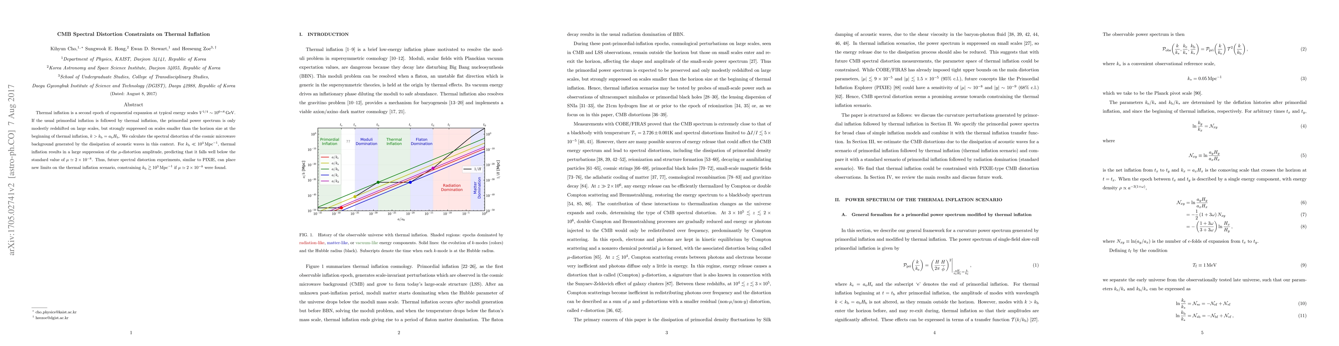 This paper investigates the spectral distortion of the cosmic microwave background (CMB) from thermal inflation, predicting a significant suppression of the $\mu$-distortion amplitude. Future CMB experiments, like PIXIE, could constrain thermal inflation scenarios by detecting or limiting this distortion.