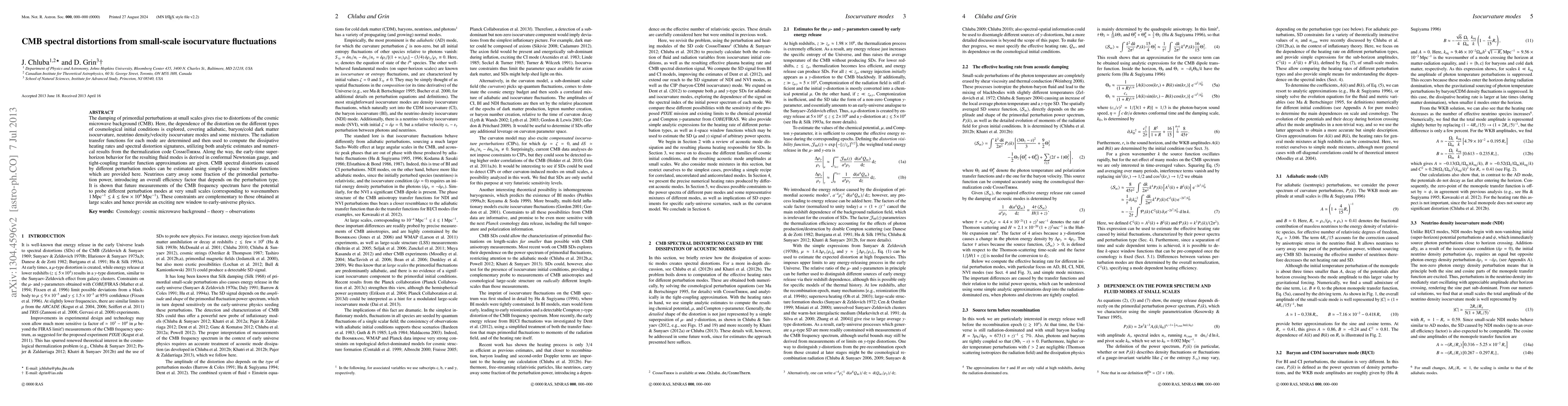 This paper investigates the cosmic microwave background (CMB) spectral distortions caused by small-scale isocurvature fluctuations, exploring various initial conditions including adiabatic and different isocurvature modes. It uses radiation transfer functions and numerical simulations to compute the resulting heating rates and spectral distortions, providing k-space window functions for estimating these effects and highlighting the potential of future CMB measurements to probe small-scale perturbations in early-universe physics.