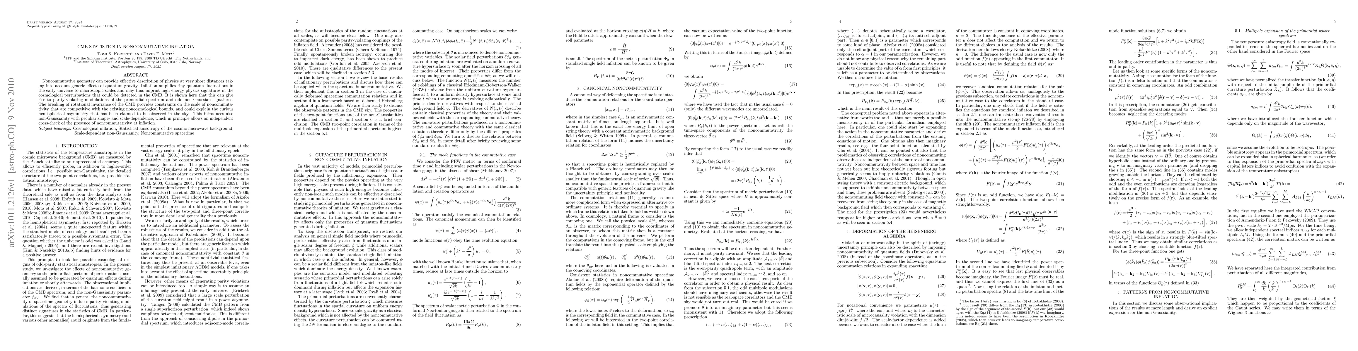 This paper explores how noncommutative geometry influences the Cosmic Microwave Background (CMB) during inflation, revealing parity-violating modulations and odd non-Gaussian signatures. It suggests that the breaking of rotational invariance in the CMB could provide competitive constraints on the scale of noncommutativity, potentially explaining observed hemispherical asymmetry.