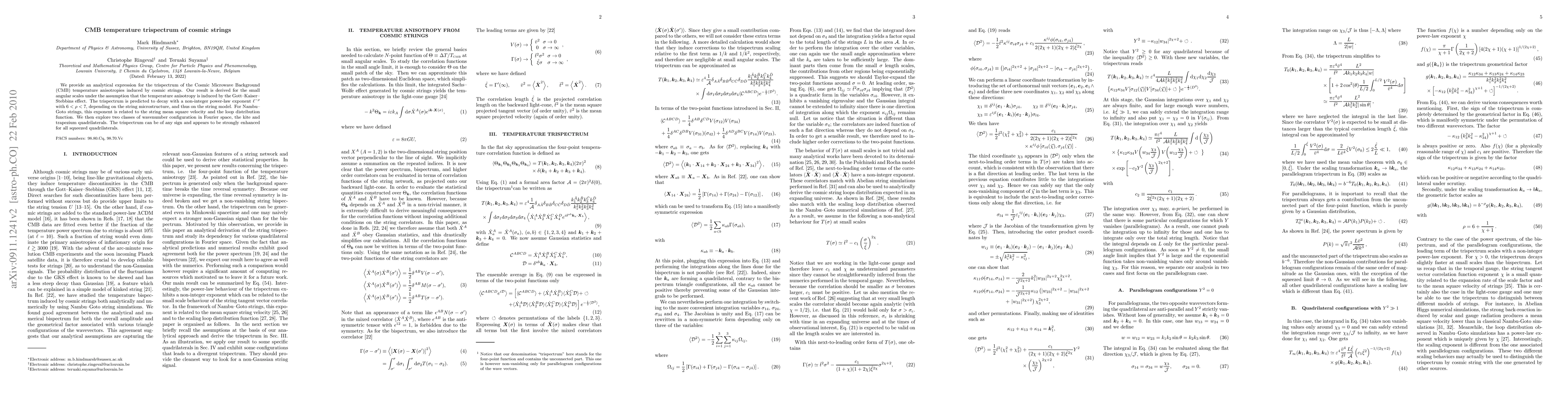 Microwave Background (CMB) temperature anisotropies induced by cosmic strings.