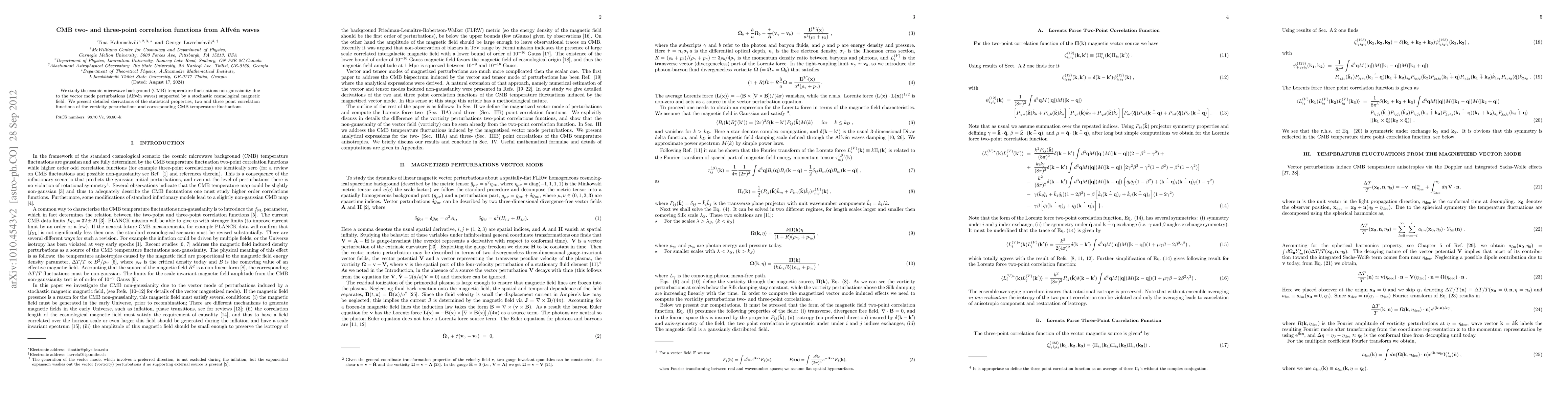 This study details the derivation of statistical properties and correlation functions of cosmic microwave background (CMB) temperature fluctuations caused by Alfvén waves from stochastic cosmological magnetic fields, focusing on two- and three-point non-gaussianity.