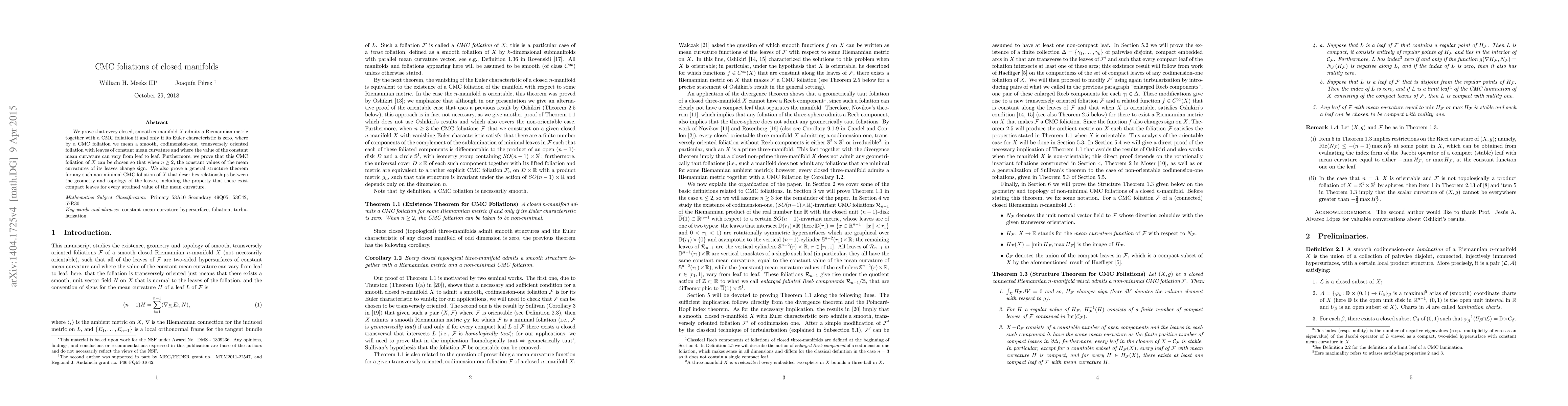 The paper establishes a new characterization of closed manifolds admitting CMC foliations and provides a comprehensive structure theorem for such foliations.