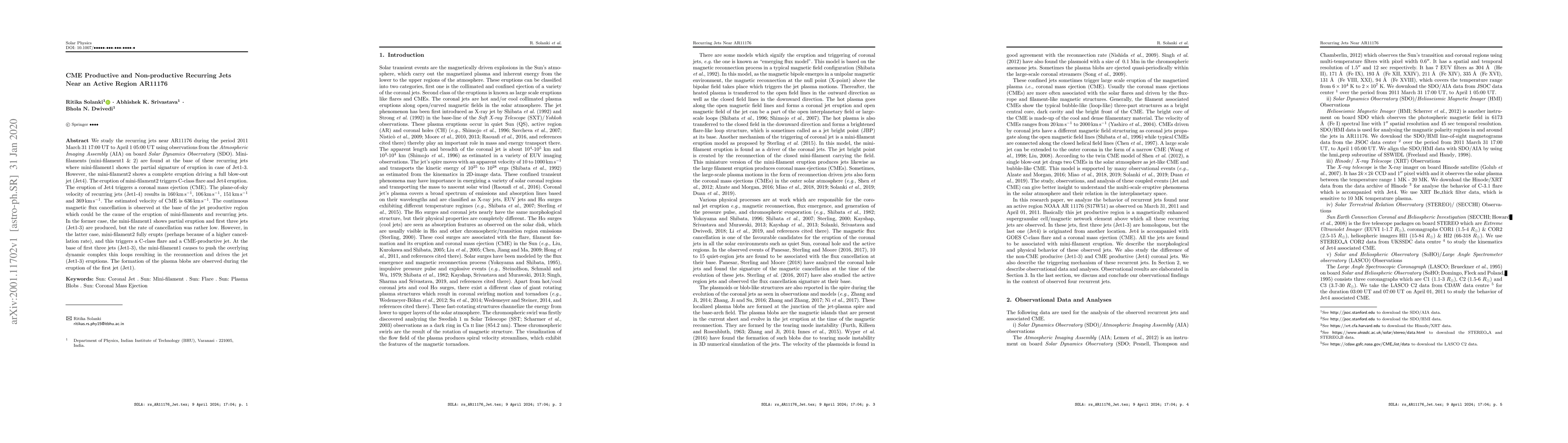 This study investigates recurring jets near Active Region AR11176, observing mini-filament eruptions and their impact on jet formation. The mini-filaments' eruptions trigger flares and a coronal mass ejection, with jet velocities ranging from 106 km/s to 369 km/s, while the CME velocity is 636 km/s.