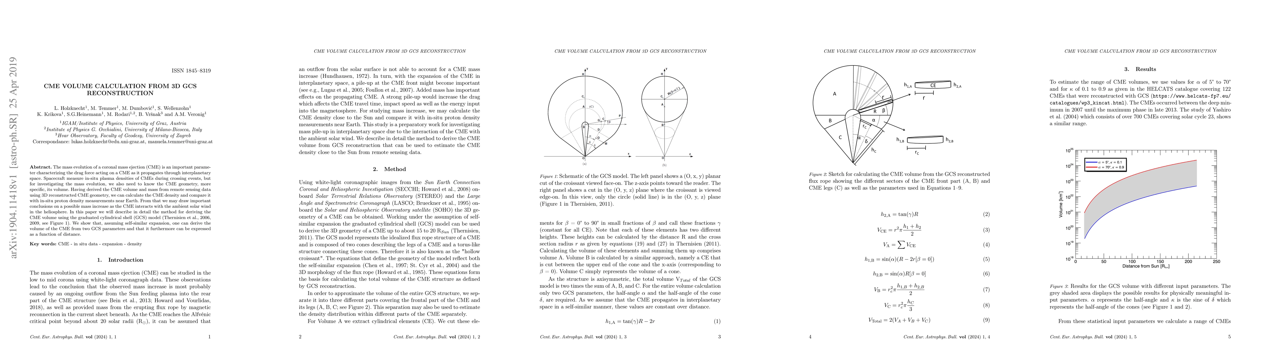 Researchers develop a method to calculate CME volume using 3D GCS reconstruction, enabling comparison of in-situ plasma densities with remote sensing data.