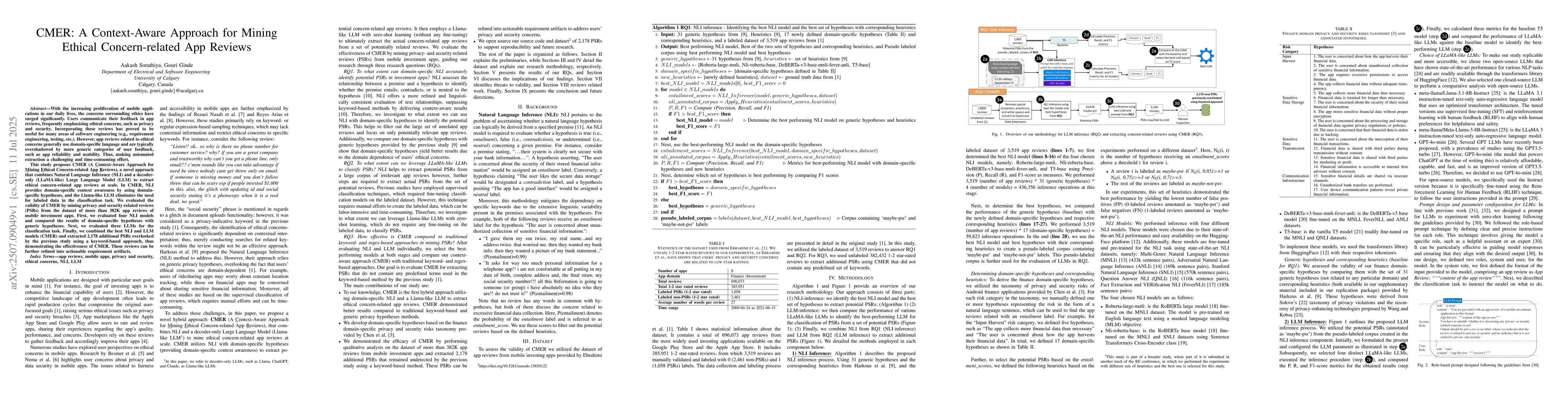 With the increasing proliferation of mobile applications in our daily lives, the concerns surrounding ethics have surged significantly. Users communicate their feedback in app reviews, frequently emphasizing ethical concerns, such as privacy and security. Incorporating these reviews has proved to be useful for many areas of software engineering (e.g., requirement engineering, testing, etc.). However, app reviews related to ethical concerns generally use domain-specific language and are typically overshadowed by more generic categories of user feedback, such as app reliability and usability. Thus, making automated extraction a challenging and time-consuming effort. This study proposes CMER (A \underline{C}ontext-Aware Approach for \underline{M}ining \underline{E}thical Concern-related App \underline{R}eviews), a novel approach that combines Natural Language Inference (NLI) and a decoder-only (LLaMA-like) Large Language Model (LLM) to extract ethical concern-related app reviews at scale. In CMER, NLI provides domain-specific context awareness by using domain-specific hypotheses, and the Llama-like LLM eliminates the need for labeled data in the classification task. We evaluated the validity of CMER by mining privacy and security-related reviews (PSRs) from the dataset of more than 382K app reviews of mobile investment apps. First, we evaluated four NLI models and compared the results of domain-specific hypotheses with generic hypotheses. Next, we evaluated three LLMs for the classification task. Finally, we combined the best NLI and LLM models (CMER) and extracted 2,178 additional PSRs overlooked by the previous study using a keyword-based approach, thus demonstrating the effectiveness of CMER. These reviews can be further refined into actionable requirement artifacts.