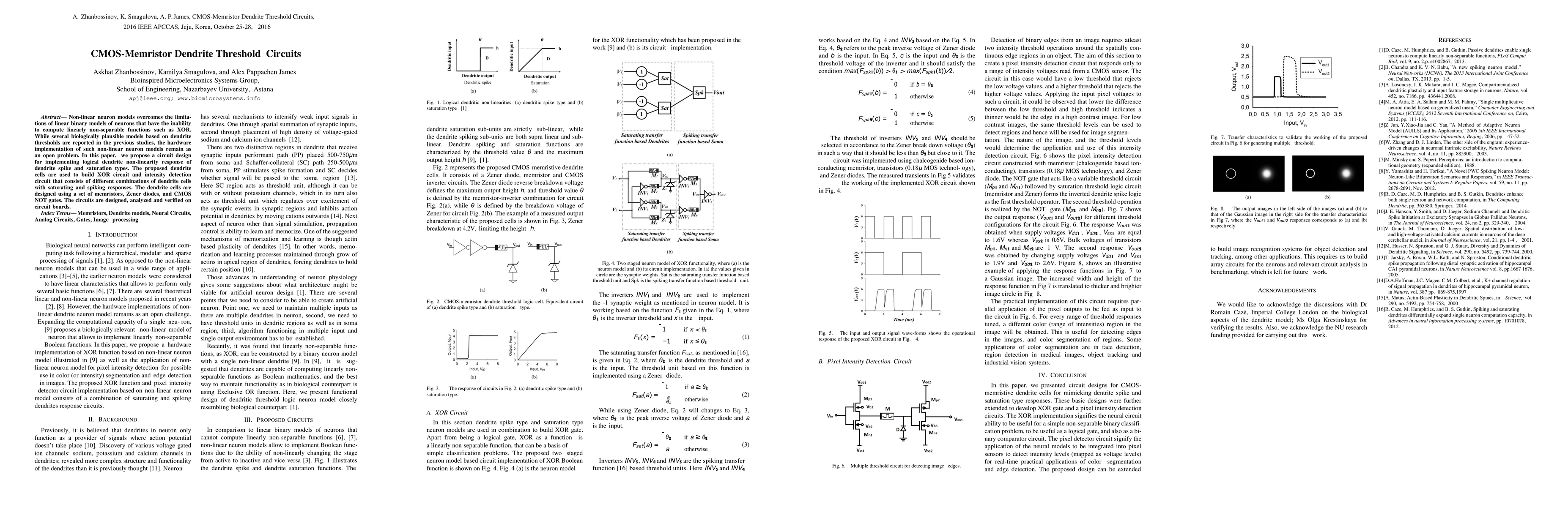 This paper proposes a CMOS-memristor circuit design for implementing non-linear neuron models with dendrite threshold responses, enabling the computation of complex functions like XOR. The design uses memristors, Zener diodes, and CMOS gates to replicate dendrite spike and saturation responses, validated through hardware implementation.