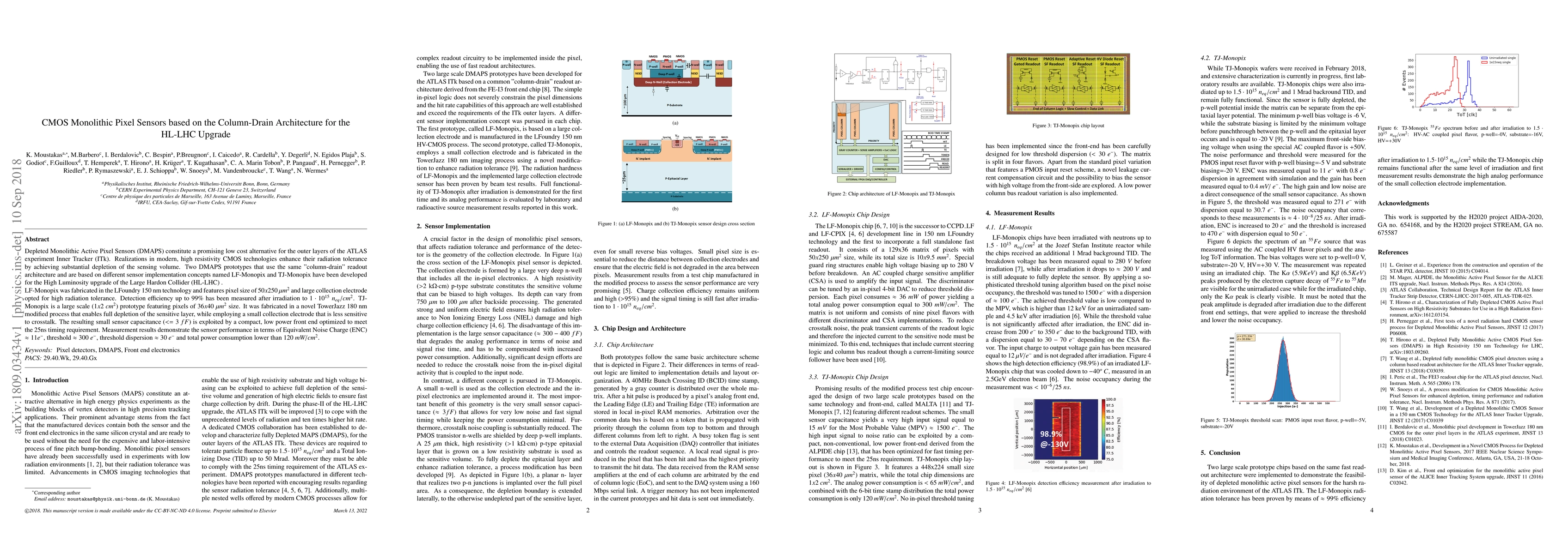 This paper presents two CMOS Monolithic Pixel Sensors (DMAPS) for the HL-LHC upgrade, featuring column-drain architecture. LF-Monopix in 150 nm technology shows high radiation tolerance and efficiency, while TJ-Monopix in a modified 180 nm process achieves low noise and power consumption.
