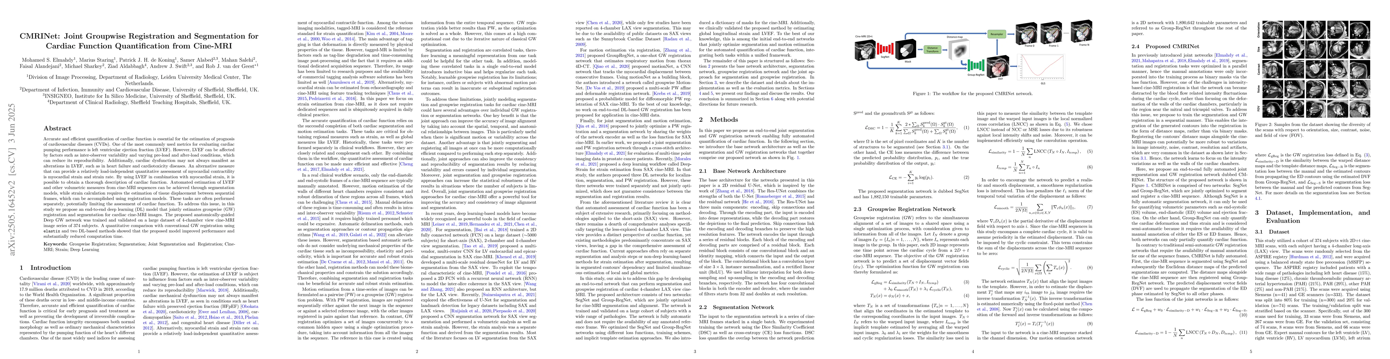 This work is novel as it integrates segmentation and registration tasks into a single deep learning model for cardiac function quantification from cine-MRI, addressing the limitations of separate task approaches and potentially offering a more comprehensive assessment of cardiac function.