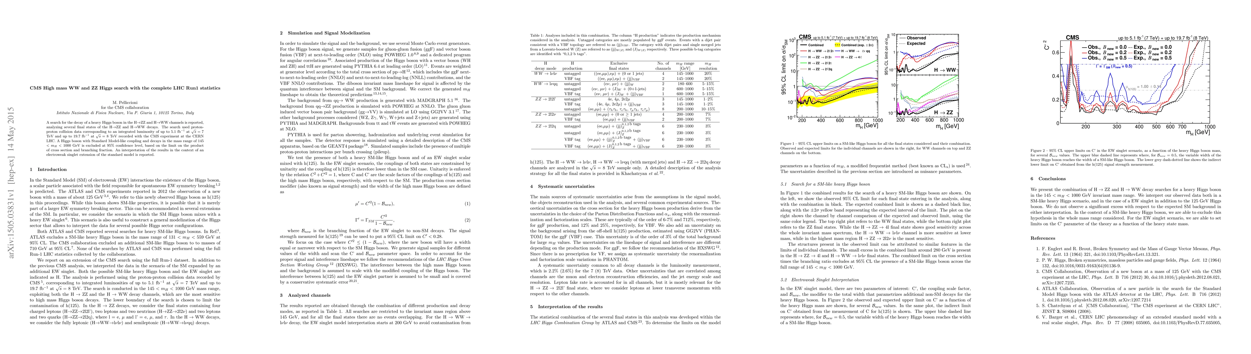 A search for the decay of a heavy Higgs boson in the H$\to$ZZ and H$\to$WW channels is reported, analyzing several final states of the H$\to$ZZ and H$\to$WW decays. The search used proton-proton collision data corresponding to an integrated luminosity of up to 5.1 fb$^{-1}$ at $\sqrt{s} = 7$ TeV and up to 19.7 fb$^{-1}$ at $\sqrt{s} = 8$ TeV recorded with the CMS experiment at the CERN LHC. A Higgs boson with Standard Model-like coupling and decays in the mass range of 145 $< m_H <$ 1000 GeV is excluded at 95\% confidence level, based on the limit on the product of cross section and branching fraction. An interpretation of the results in the context of an electroweak singlet extension of the standard model is reported.
