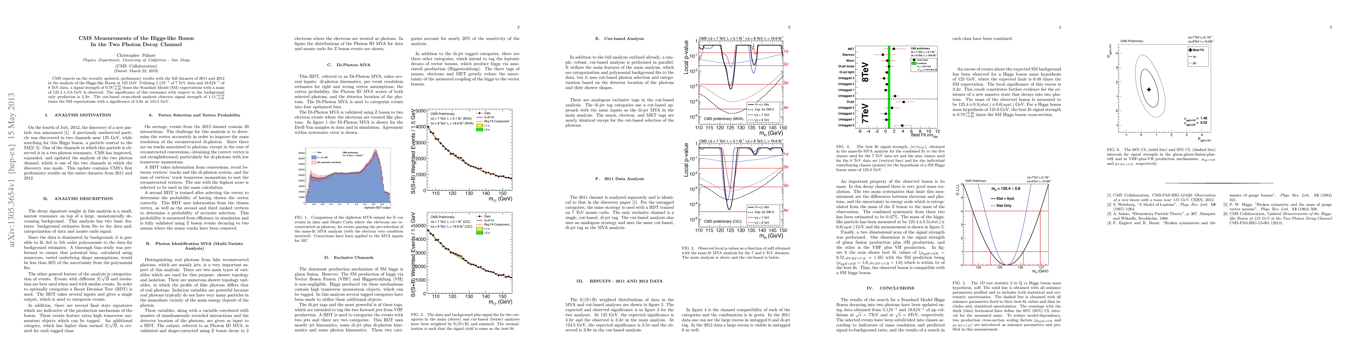 CMS reports on the recently updated, preliminary results with the full datasets of 2011 and 2012 in the analysis of the Higgs-like Boson at 125 GeV. Utilizing 5.1$fb^{-1}$ of 7 TeV data and 19.6$fb^{-1}$ of 8 TeV data, a signal strength of $0.78^{+0.28}_{-0.26}$ times the Standard Model (SM) expectations with a mass of $125.4\pm0.8$ GeV is observed. The significance of this resonance with respect to the background only prediction is $3.2\sigma$. The cut-based cross-check analysis observes signal strength of $1.11^{+0.32}_{-0.30}$ times the SM expectations with a significance of $3.9\sigma$ at 124.5 GeV.