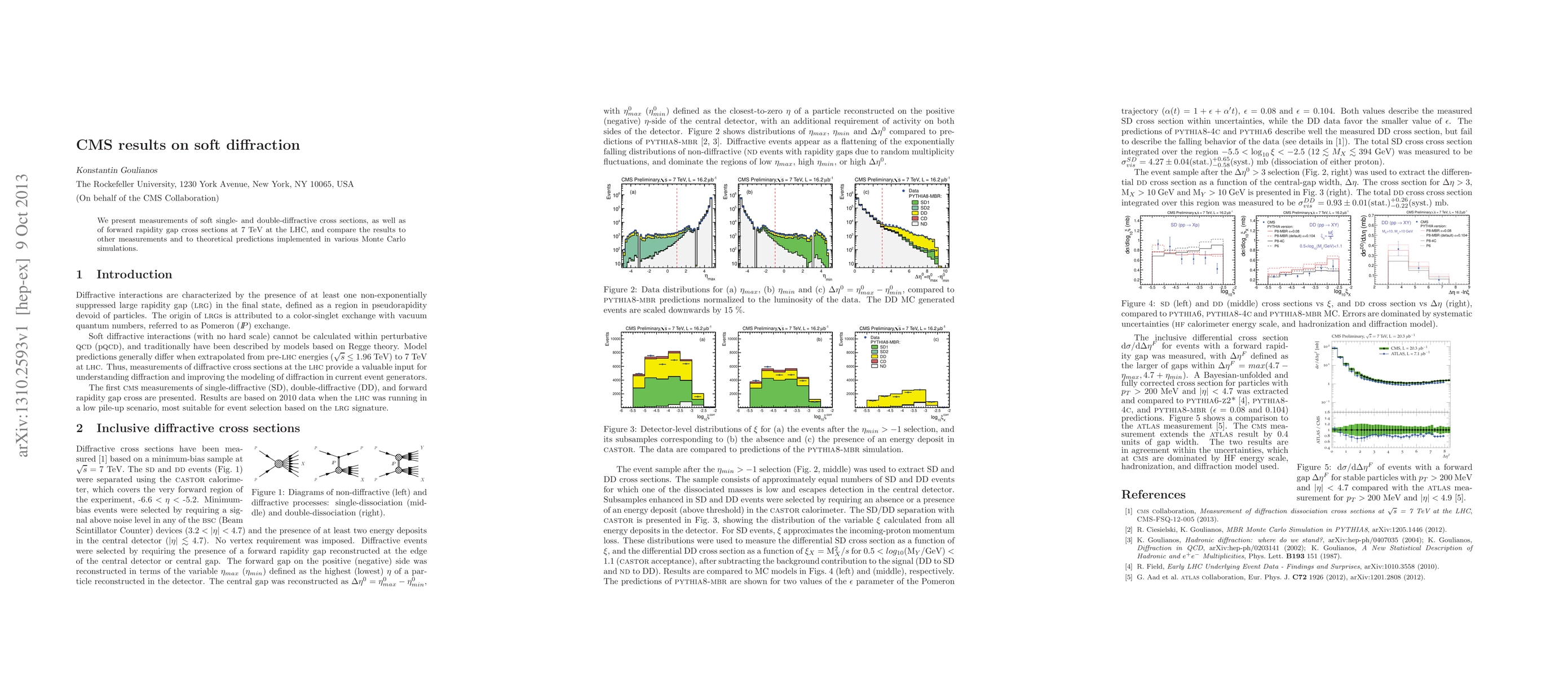Researchers measured soft diffraction cross sections at 7 TeV in the LHC, comparing results to theoretical predictions and previous measurements.