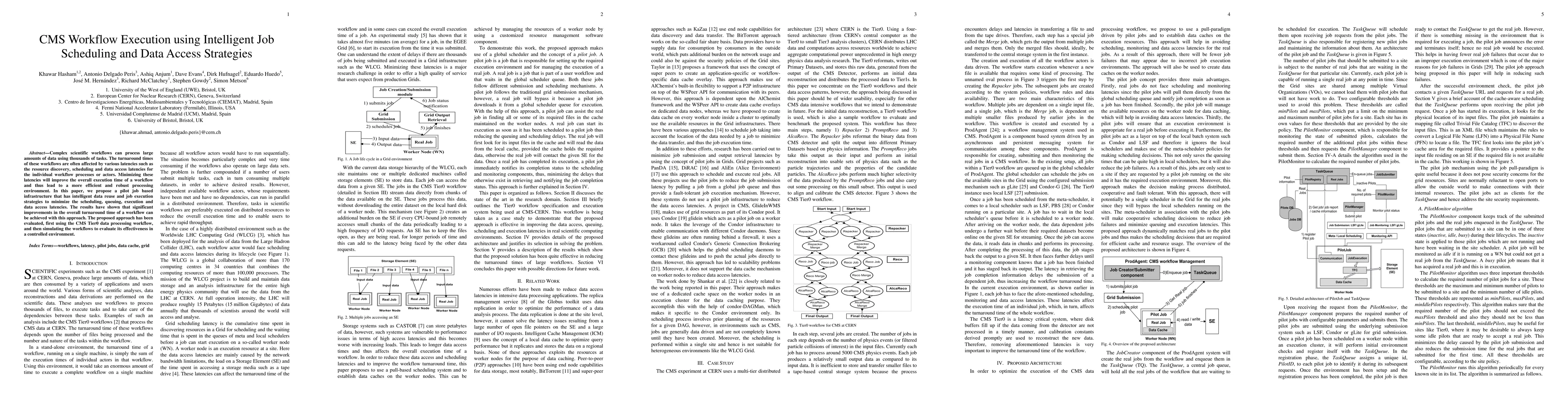 Complex scientific workflows can process large amounts of data using thousands of tasks. The turnaround times of these workflows are often affected by various latencies such as the resource discovery, scheduling and data access latencies for the individual workflow processes or actors. Minimizing these latencies will improve the overall execution time of a workflow and thus lead to a more efficient and robust processing environment. In this paper, we propose a pilot job based infrastructure that has intelligent data reuse and job execution strategies to minimize the scheduling, queuing, execution and data access latencies. The results have shown that significant improvements in the overall turnaround time of a workflow can be achieved with this approach. The proposed approach has been evaluated, first using the CMS Tier0 data processing workflow, and then simulating the workflows to evaluate its effectiveness in a controlled environment.