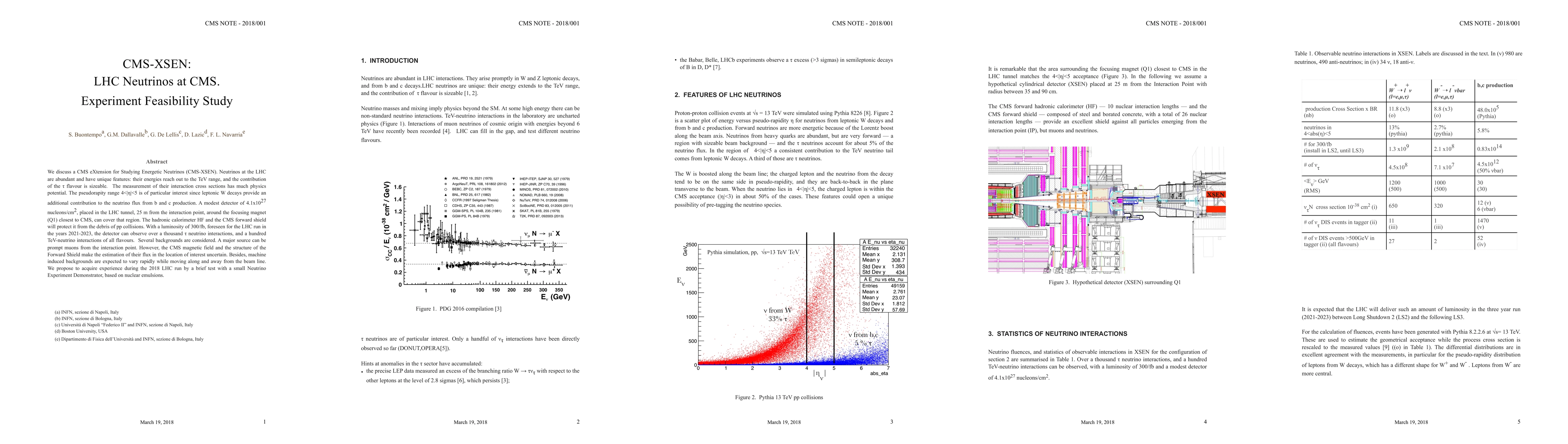 The CMS-XSEN extension aims to study energetic neutrinos at the LHC, leveraging the unique features of neutrinos with energies up to TeV and significant tau flavor contributions. A modest detector placed 25 meters from the interaction point can observe numerous tau and TeV neutrino interactions, though backgrounds from prompt muons and machine-induced factors pose challenges. A small demonstrator experiment using nuclear emulsions during the 2018 run is proposed to gain preliminary data.