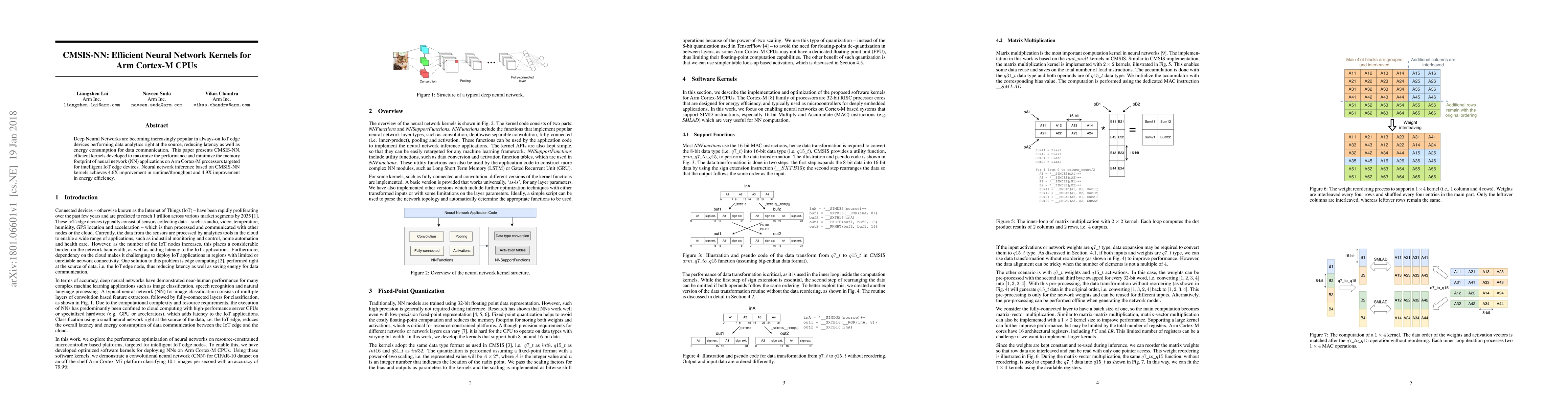 A novel neural network inference framework was developed using CMSIS-NN kernels on Arm Cortex-M processors.
