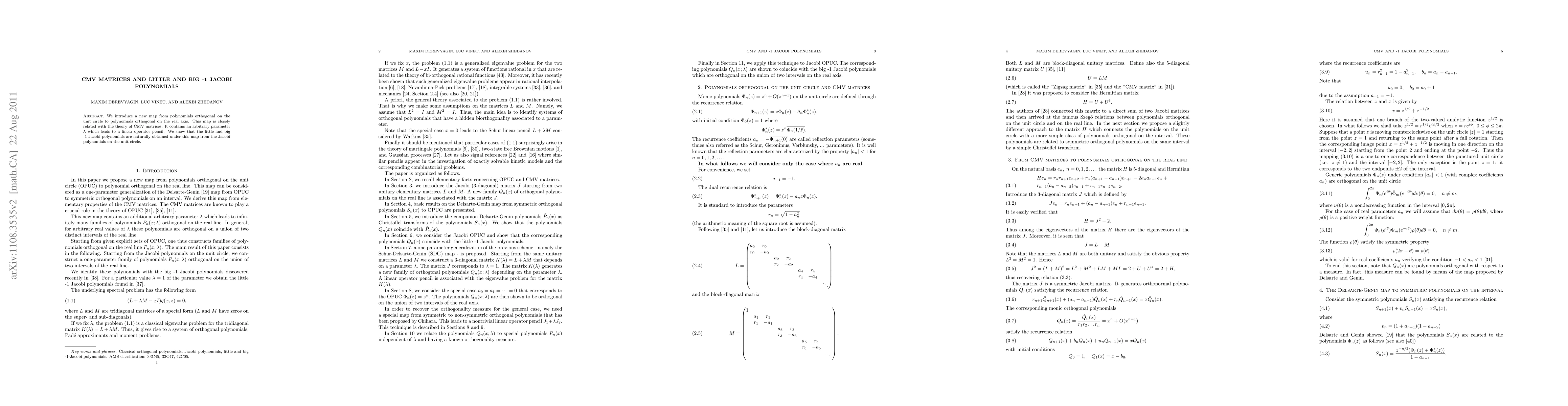 We introduce a new map from polynomials orthogonal on the unit circle to polynomials orthogonal on the real axis. This map is closely related with the theory of CMV matrices. It contains an arbitrary parameter which leads to a linear operator pencil. We show that the little and big -1 Jacobi polynomials are naturally obtained under this map from the Jacobi polynomials on the unit circle.