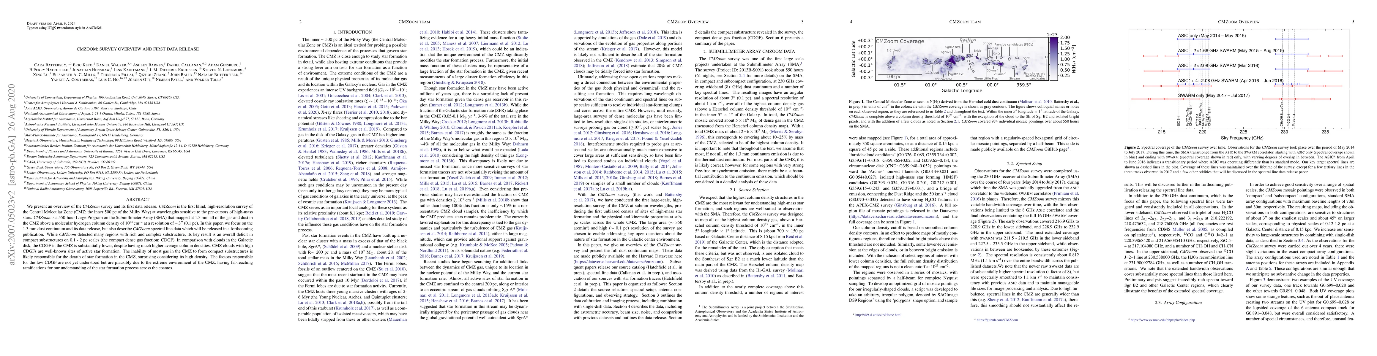 CMZoom presents the first blind, high-resolution survey of the CMZ's pre-cursors of high-mass stars, providing detailed 1.3 mm dust continuum data and spectral line data for 500 hours on the SMA.