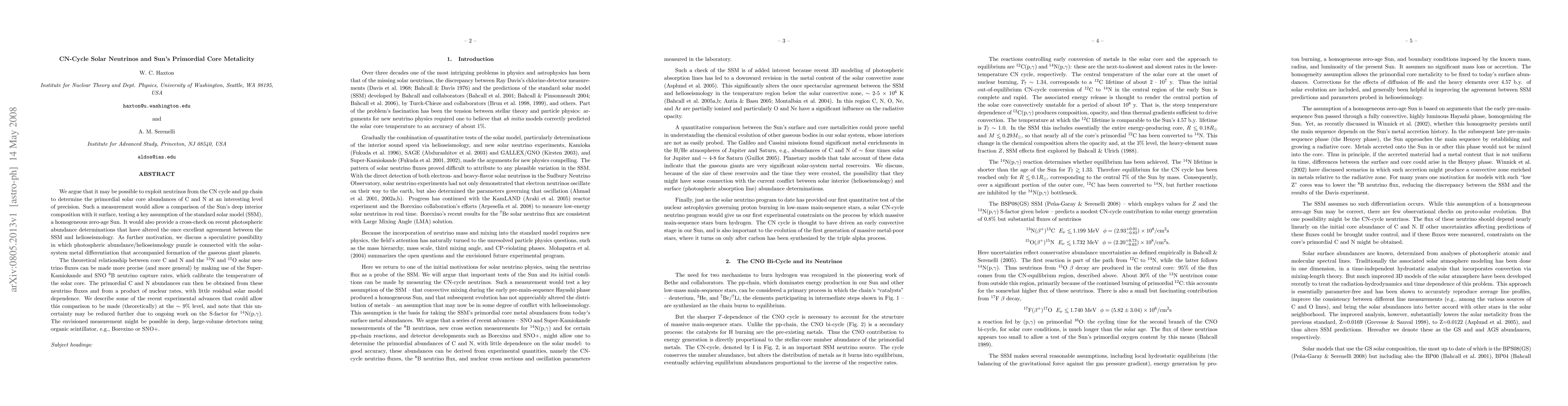 This paper proposes using CN-cycle solar neutrinos to determine the primordial solar core abundances of carbon and nitrogen, providing a test of the standard solar model's assumption of a homogeneous zero-age Sun. It also suggests a potential link between photospheric abundance discrepancies and solar-system metal differentiation.