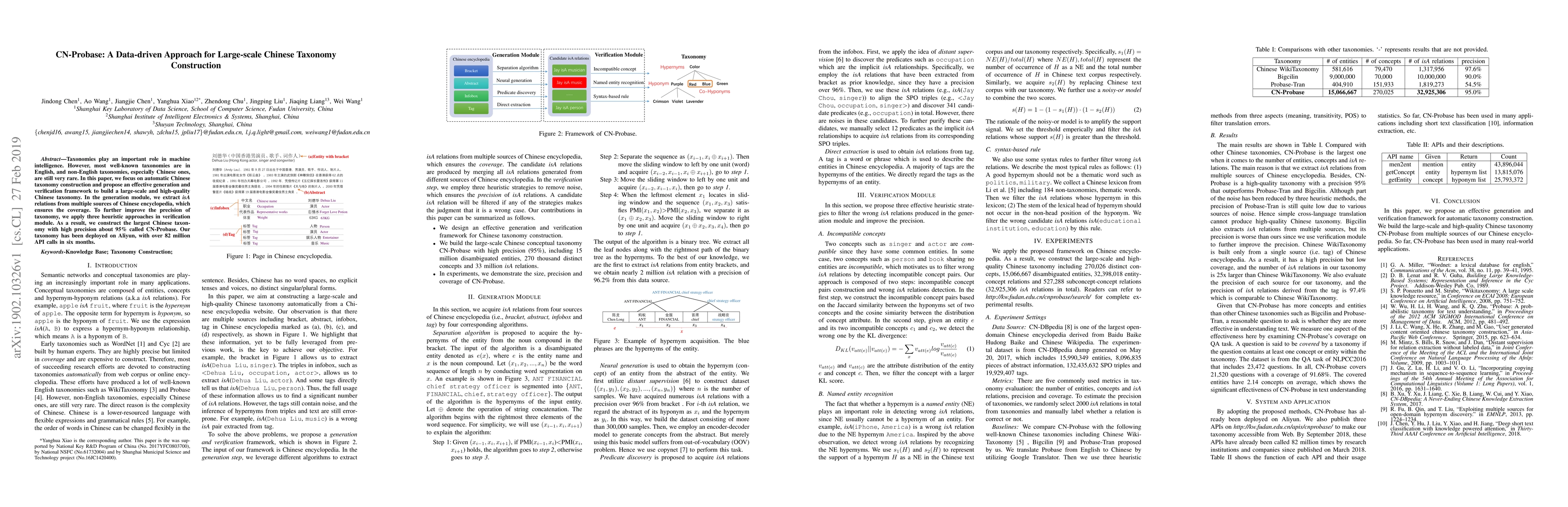 Taxonomies play an important role in machine intelligence. However, most well-known taxonomies are in English, and non-English taxonomies, especially Chinese ones, are still very rare. In this paper, we focus on automatic Chinese taxonomy construction and propose an effective generation and verification framework to build a large-scale and high-quality Chinese taxonomy. In the generation module, we extract isA relations from multiple sources of Chinese encyclopedia, which ensures the coverage. To further improve the precision of taxonomy, we apply three heuristic approaches in verification module. As a result, we construct the largest Chinese taxonomy with high precision about 95% called CN-Probase. Our taxonomy has been deployed on Aliyun, with over 82 million API calls in six months.