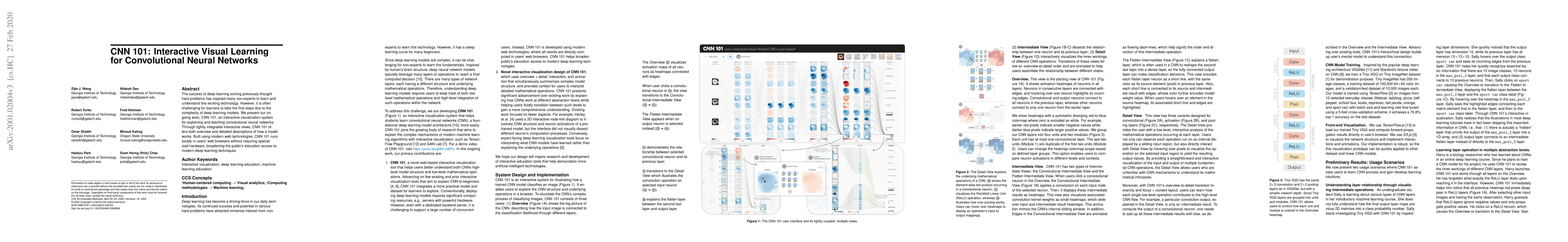 The paper introduces CNN 101, an interactive visual learning system designed to simplify the understanding of convolutional neural networks for non-experts. It provides comprehensive, accessible explanations and visualizations that run locally in web browsers, democratizing access to deep learning education.