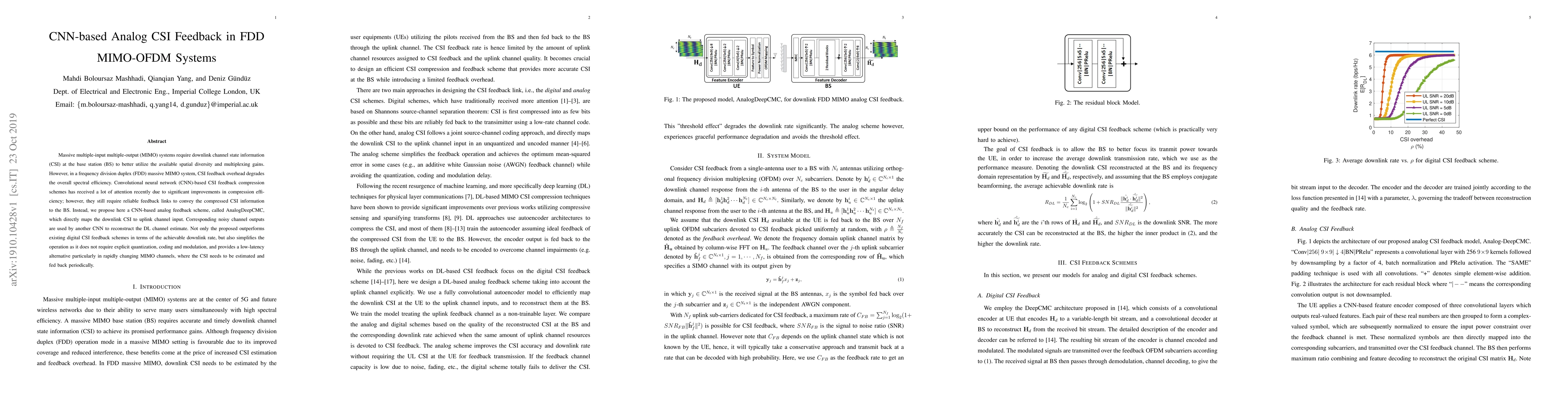 This paper proposes a CNN-based analog CSI feedback scheme called AnalogDeepCMC for FDD MIMO-OFDM systems, which directly maps downlink CSI to uplink channel input, thereby eliminating the need for quantization, coding, and modulation, and significantly improving spectral efficiency and reducing latency.