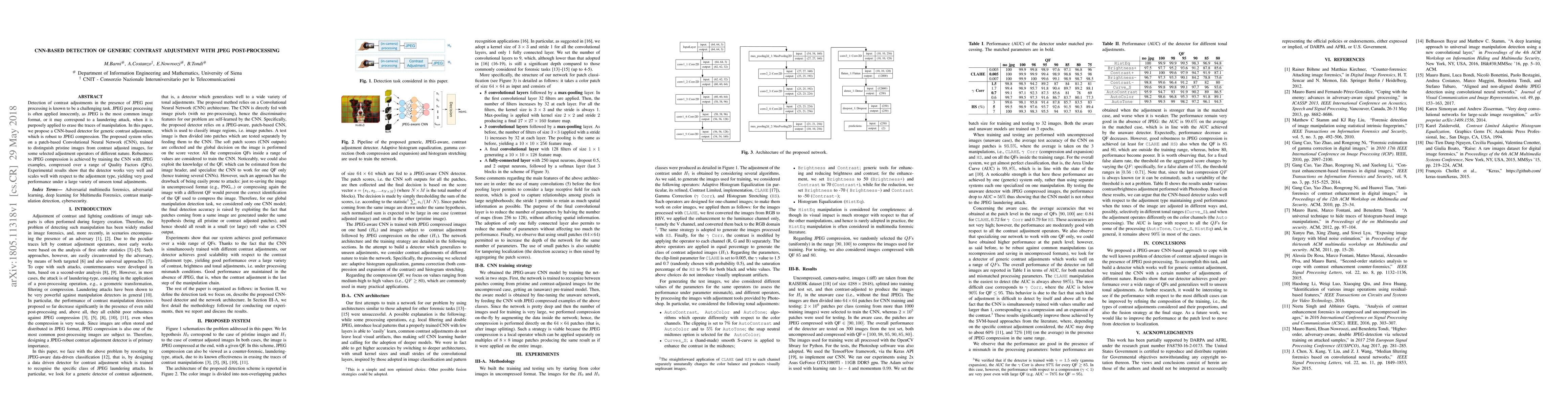 This paper proposes a CNN-based detector for identifying generic contrast adjustments in images, even when they undergo JPEG post-processing. The system uses a patch-based CNN trained on JPEG examples across various compression levels, demonstrating robust performance against unseen tonal adjustments.