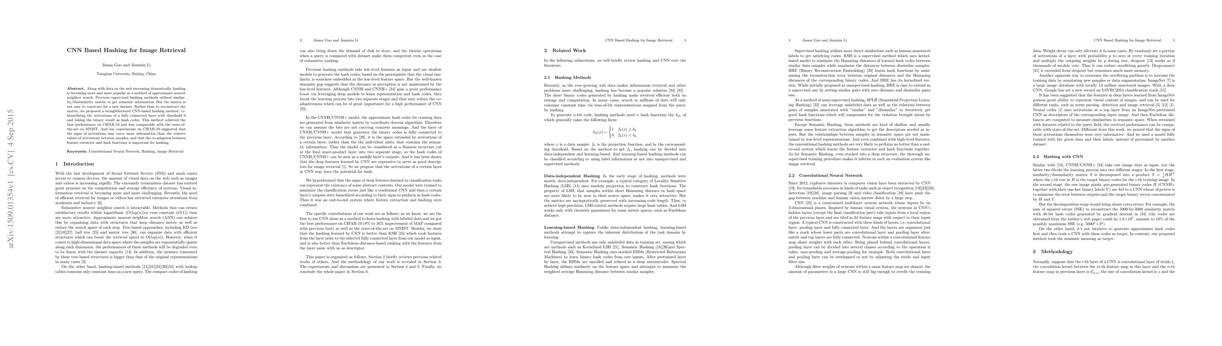 A new CNN-based hashing method achieves state-of-the-art performance on image retrieval tasks like CIFAR-10, suggesting that binary codes may hold more information than relative activation values.