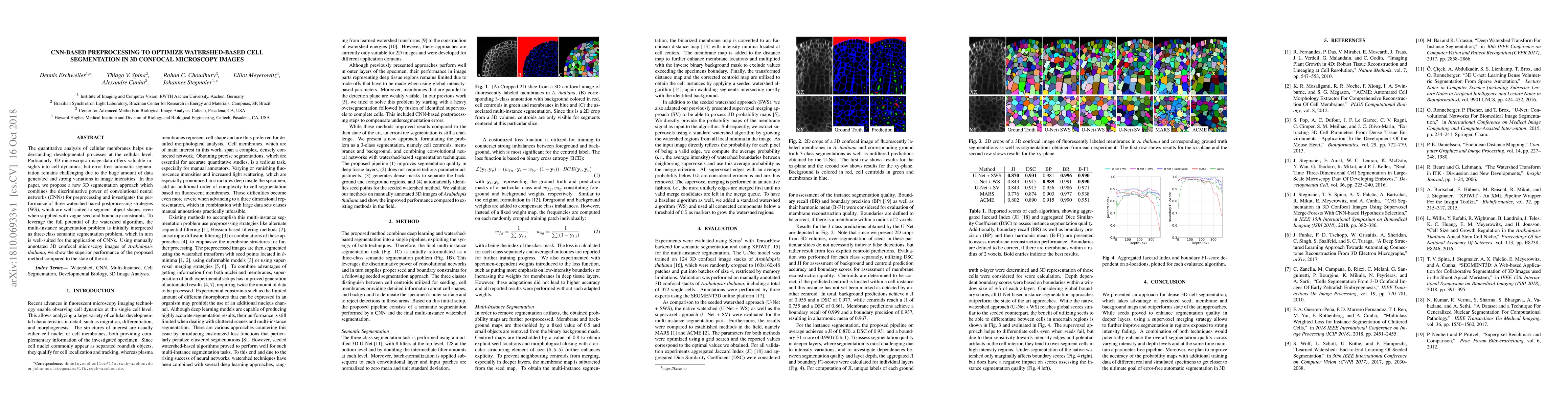 This paper proposes a CNN-based preprocessing method to optimize watershed-based segmentation for 3D confocal microscopy images, demonstrating superior performance in segmenting cellular membranes compared to existing techniques. The approach combines CNNs for initial semantic segmentation and three watershed strategies for final object delineation.