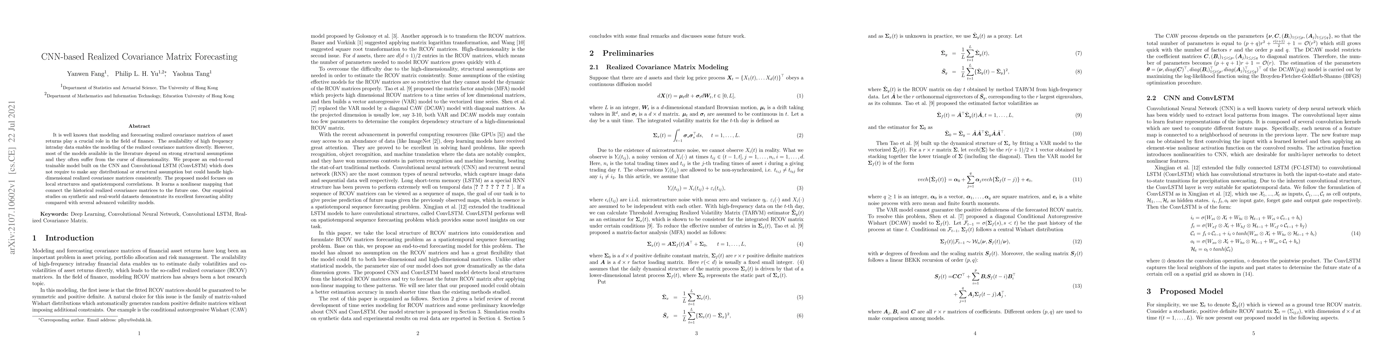 This paper proposes a CNN-based model with Convolutional LSTM for forecasting realized covariance matrices of asset returns, leveraging high-frequency data without structural assumptions. It demonstrates superior forecasting performance compared to existing models on both synthetic and real datasets.
