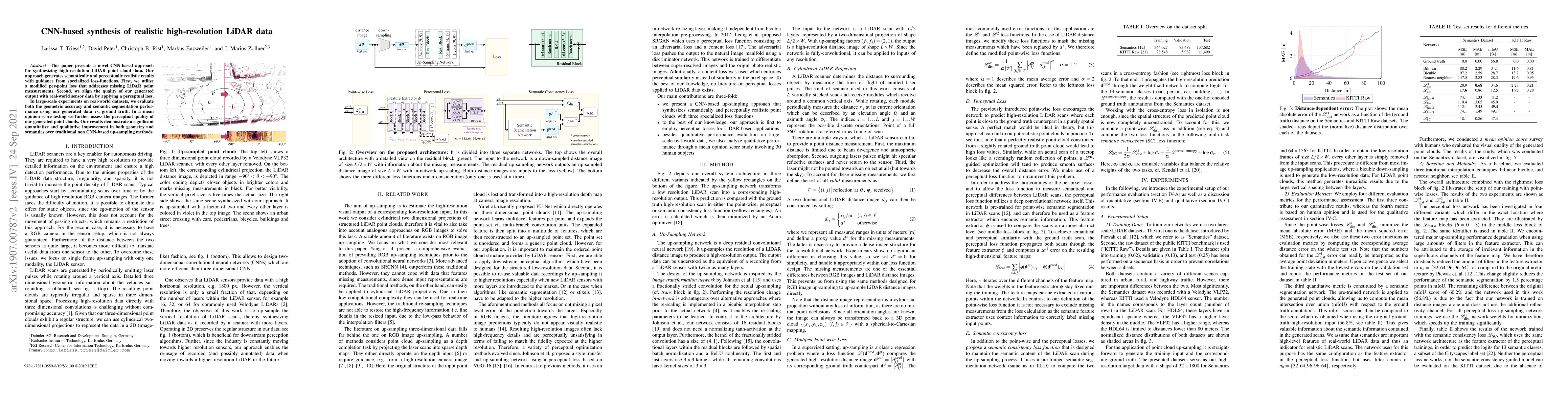 This paper introduces a CNN-based method for generating realistic high-resolution LiDAR data, outperforming traditional up-sampling methods in both geometric accuracy and semantic segmentation.