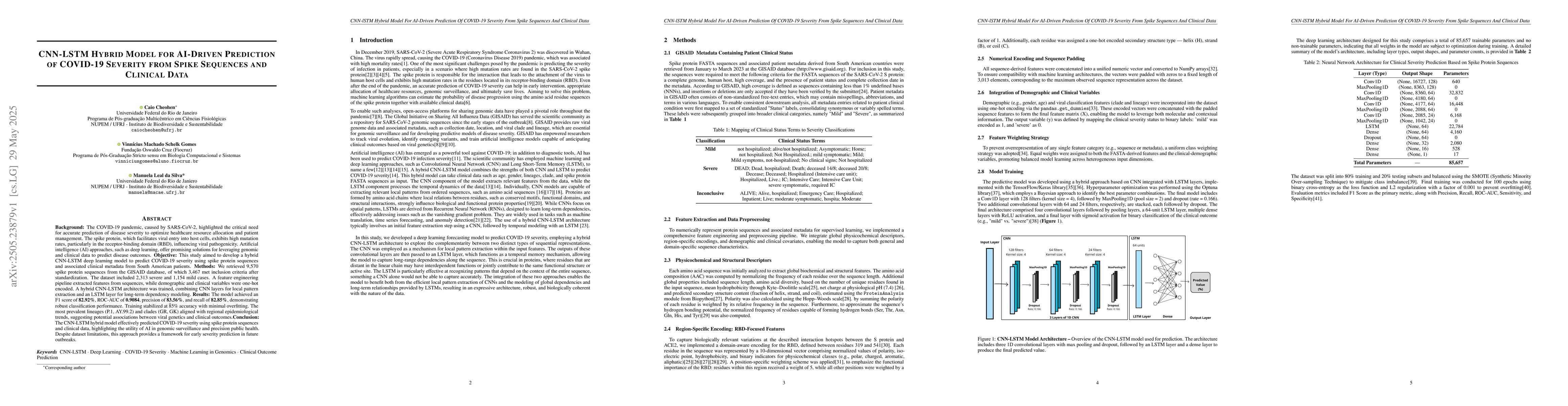 A CNN-LSTM hybrid model accurately predicted COVID-19 severity from spike protein sequences and clinical data, achieving high F1 score and accuracy rates.