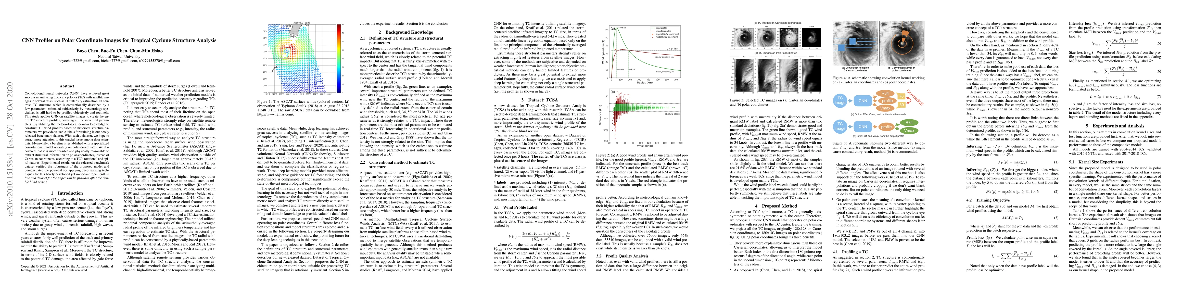 Convolutional neural networks (CNN) have achieved great success in analyzing tropical cyclones (TC) with satellite images in several tasks, such as TC intensity estimation. In contrast, TC structure, which is conventionally described by a few parameters estimated subjectively by meteorology specialists, is still hard to be profiled objectively and routinely. This study applies CNN on satellite images to create the entire TC structure profiles, covering all the structural parameters. By utilizing the meteorological domain knowledge to construct TC wind profiles based on historical structure parameters, we provide valuable labels for training in our newly released benchmark dataset. With such a dataset, we hope to attract more attention to this crucial issue among data scientists. Meanwhile, a baseline is established with a specialized convolutional model operating on polar-coordinates. We discovered that it is more feasible and physically reasonable to extract structural information on polar-coordinates, instead of Cartesian coordinates, according to a TC's rotational and spiral natures. Experimental results on the released benchmark dataset verified the robustness of the proposed model and demonstrated the potential for applying deep learning techniques for this barely developed yet important topic.