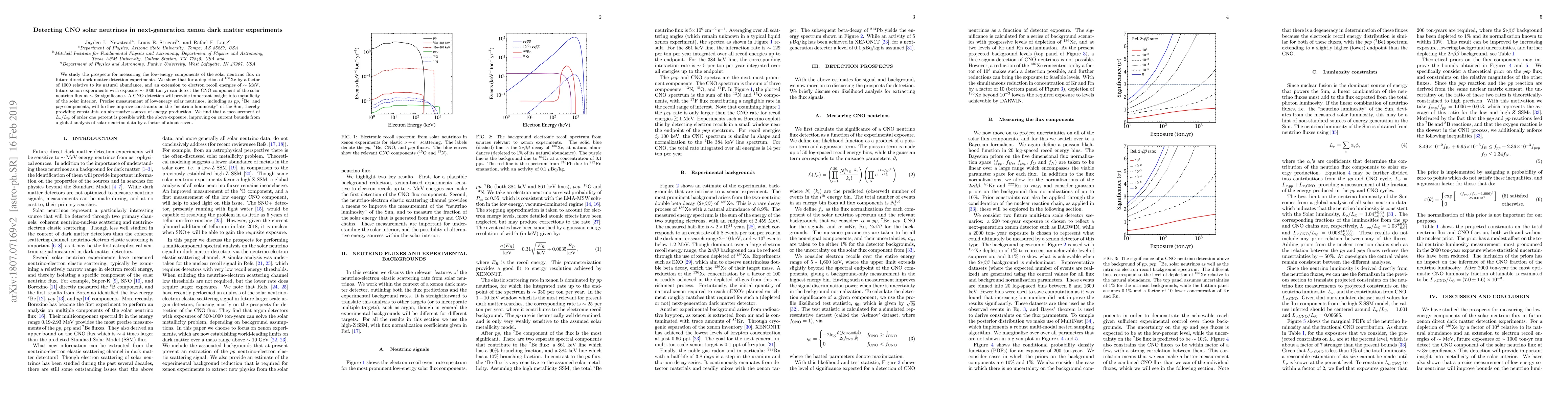 Future dark matter experiments may detect CNO solar neutrinos at 3 sigma significance with a detection of 100x natural abundance depletion, offering insight into solar metallicity and constraints on alternative energy sources.