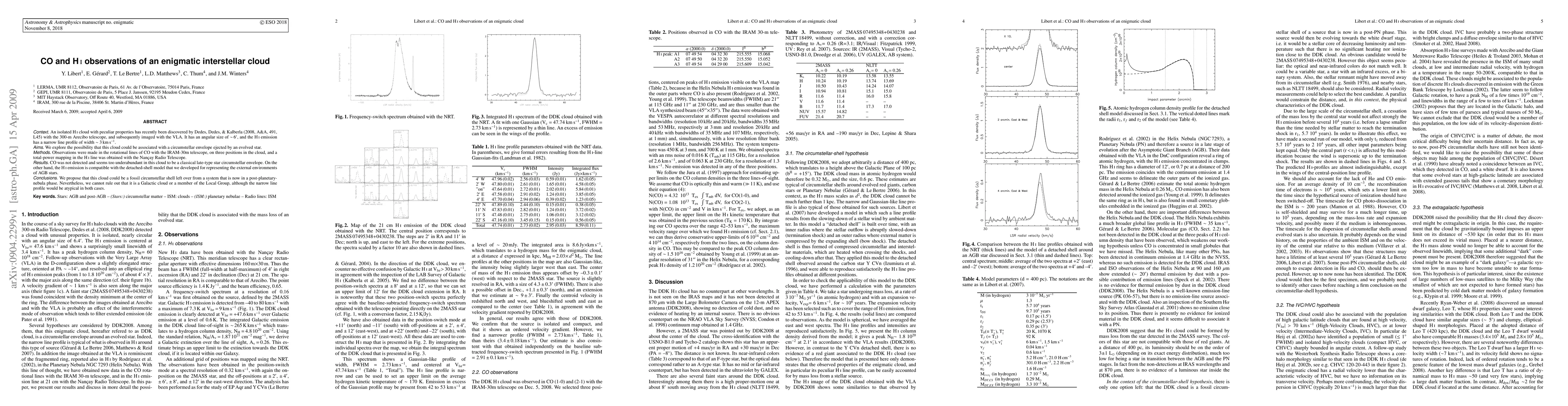 An isolated HI cloud with peculiar properties has recently been discovered by Dedes, Dedes, & Kalberla (2008, A&A, 491, L45) with the 300-m Arecibo telescope, and subsequently imaged with the VLA. It has an angular size of ~6', and the HI emission has a narrow line profile of width ~ 3 km/s. We explore the possibility that this cloud could be associated with a circumstellar envelope ejected by an evolved star. Observations were made in the rotational lines of CO with the IRAM-30m telescope, on three positions in the cloud, and a total-power mapping in the HI line was obtained with the Nancay Radio Telescope. CO was not detected and seems too underabundant in this cloud to be a classical late-type star circumstellar envelope. On the other hand, the HI emission is compatible with the detached-shell model that we developed for representing the external environments of AGB stars. We propose that this cloud could be a fossil circumstellar shell left over from a system that is now in a post-planetary-nebula phase. Nevertheless, we cannot rule out that it is a Galactic cloud or a member of the Local Group, although the narrow line profile would be atypical in both cases.
