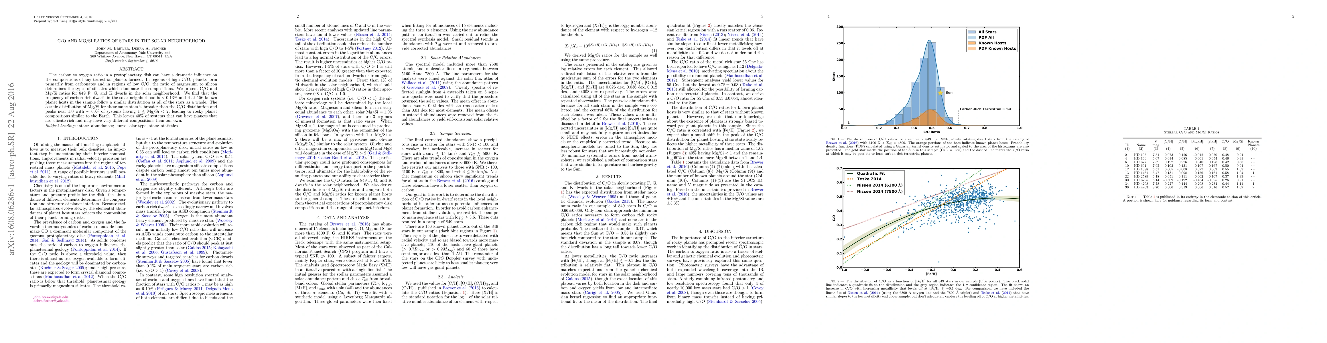 The study presents C/O and Mg/Si ratios for 849 F, G, and K dwarfs in the solar neighborhood, derived using high signal-to-noise ratio (SNR) spectra and a consistent analysis method.