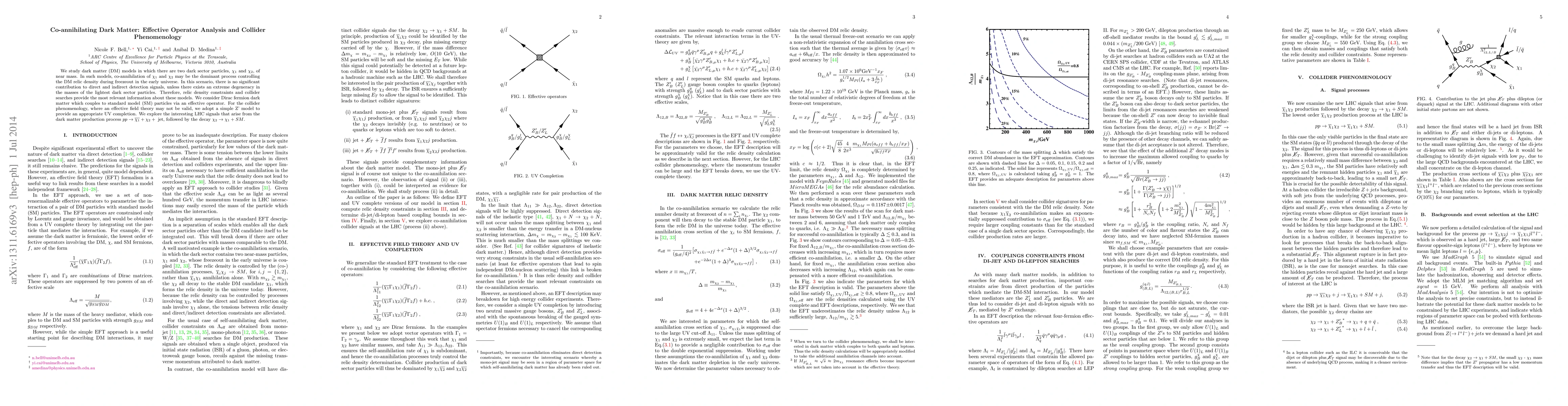 This paper investigates dark matter models with two nearly degenerate particles, $\chi_1$ and $\chi_2$, where co-annihilation controls relic density, leading to minimal direct/indirect detection signals. It focuses on collider phenomenology, exploring LHC signals from the production and decay of these particles in a Z' model.