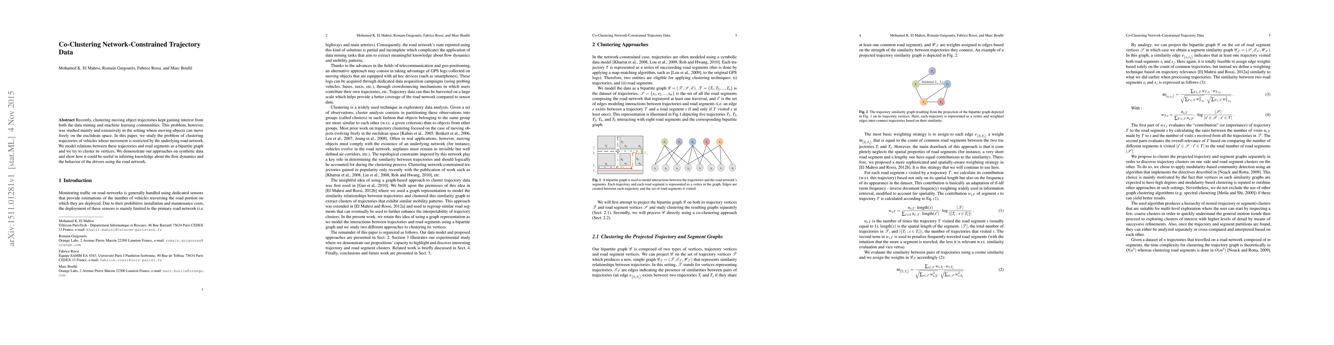 This paper proposes methods for clustering vehicle trajectories constrained by a road network, modeling the problem as a bipartite graph between trajectories and road segments. The approach is demonstrated on synthetic data, showing potential for insights into traffic dynamics and driver behavior.