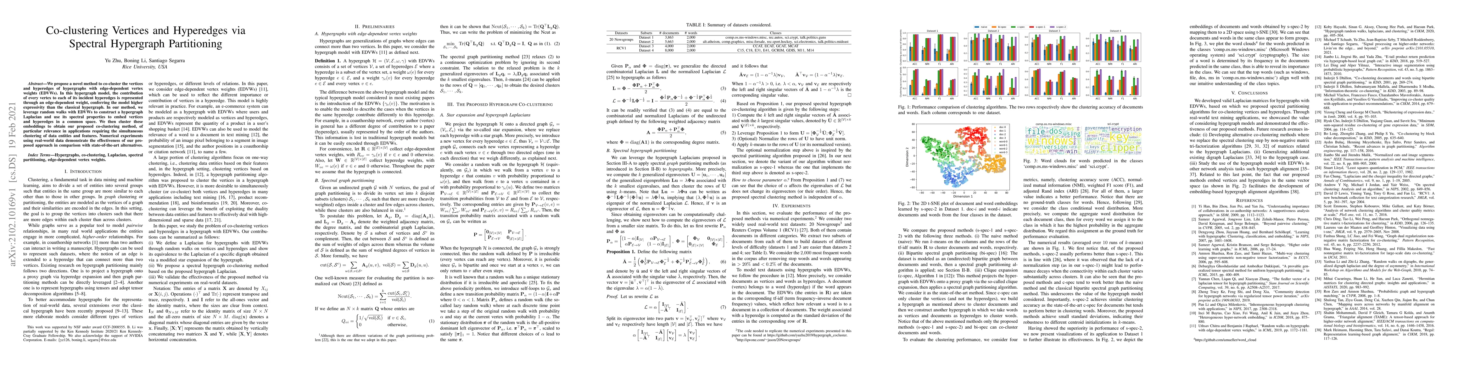 This paper introduces a novel spectral hypergraph partitioning method for co-clustering vertices and hyperedges in hypergraphs with edge-dependent vertex weights, using random walks and spectral embedding, and demonstrates its effectiveness through real-world data comparisons.