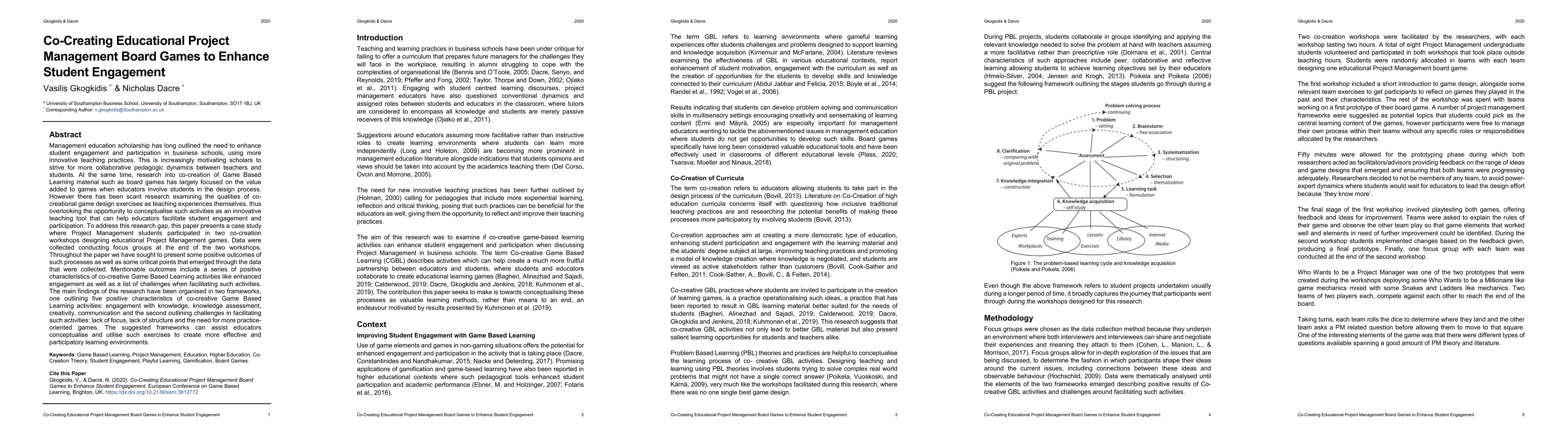 This paper explores the use of co-created educational project management board games to enhance student engagement in management education. The study found that co-creative game design workshops foster engagement, creativity, communication, and knowledge assessment, but also highlighted challenges such as lack of focus and structure, and the need for more practice-oriented games.