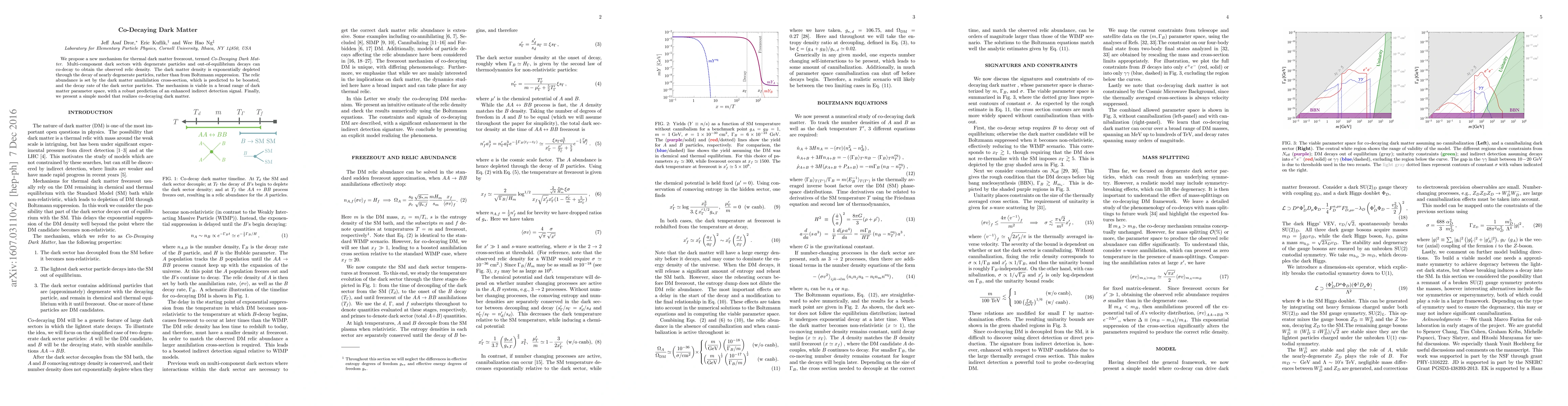 This paper introduces a novel mechanism for dark matter freezeout called Co-Decaying Dark Matter, where multi-component dark sectors with nearly degenerate particles decay out-of-equilibrium to achieve the observed relic density. The model predicts an enhanced indirect detection signal and is viable across a broad range of parameters.